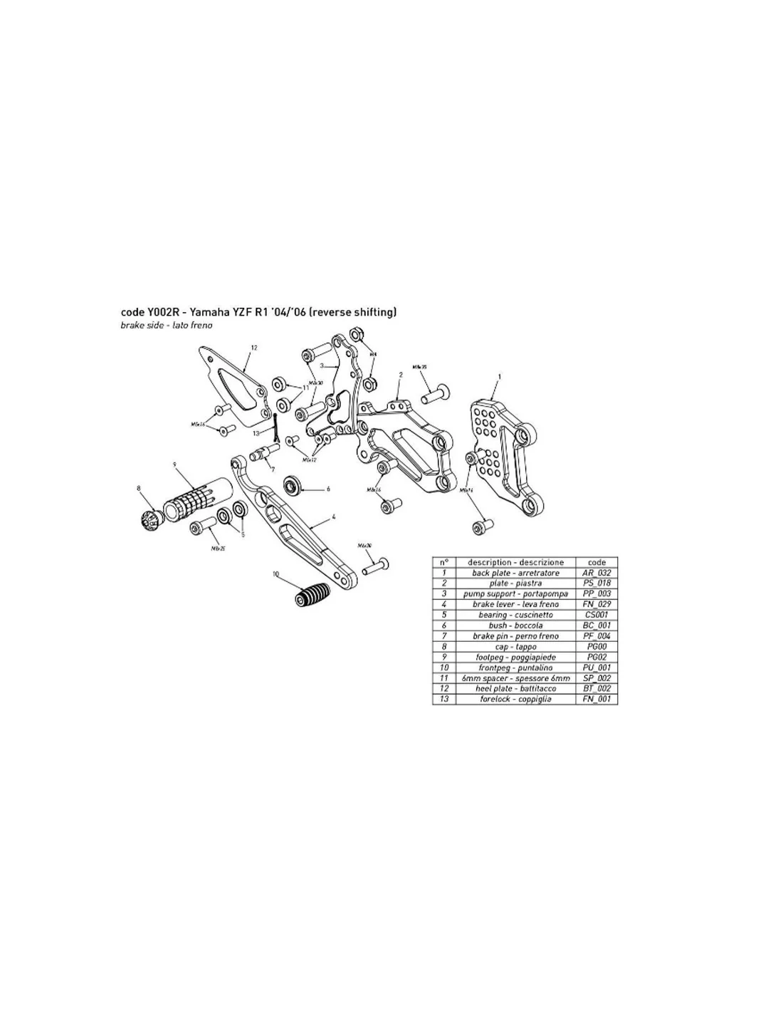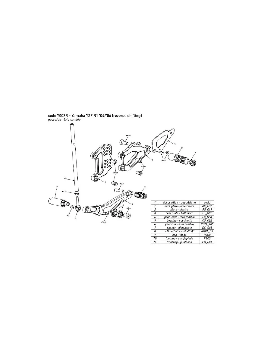 Estriberas ACCOSSATO para YAMAHA YZF-R1 15-16 Racing ESTANDAR Y RETROCESO