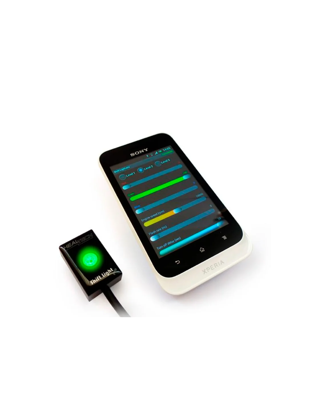 El Shift Light Pro tiene un radio Bluetooth integrado y se programa desde un dispositivo con Android.
