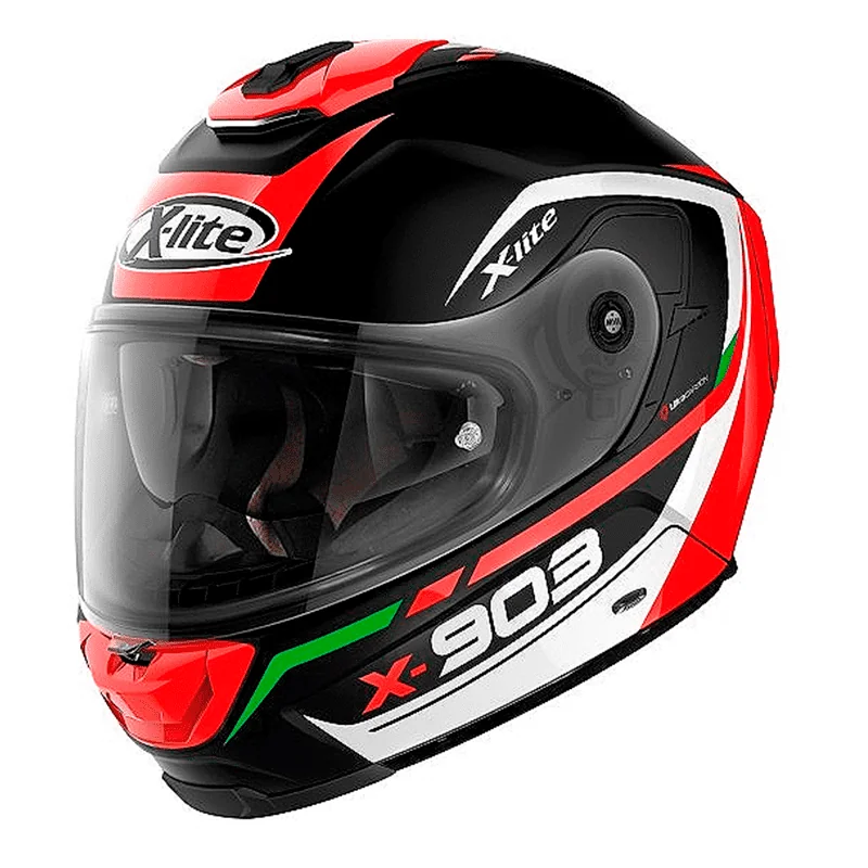 Con el X-903, X-lite presenta un verdadero casco supertouring: la parte superior de partituras totalmente equipada modelo integral de conducción confort y una forma muy aerodinámica y elegante con una serie de características innovadoras como el montaje rápido de visera asistida por imanes o individualmente altura interior ajustable. A la vanguardia del desarrollo fueron los más altos niveles de confort, así como características innovadoras que ofrece al usuario ventajas reales en la vida cotidiana. Así lo demuestran, entre otras cosas, el nuevo sistema patentado de montaje de Visor magnético (MVA). La instalación de la pantalla "ultrawide" con campo de visión extra amplio así es más fácil que nunca. La buena noticia para usuarios de gafas: gracias al acolchado desmontable a los lados, el casco ofrece suficiente espacio para los estribos, las gafas siempre sentarse perfectamente y no forman desagradables puntos de presión. También en términos de seguridad, el nuevo X-903 es el más alto nivel: los scanners - sistema de liberación de emergencia de Nolan permite equipos de primeras respuesta quitar las almohadillas en unos sencillos pasos para quitar el casco con poca fuerza - un importante plus en caso de caída. La más exclusiva cara completa recorriendo el casco para los más exigentes de los turistas de la moto. Por supuesto, este casco es también aprobado ECE 22-05.