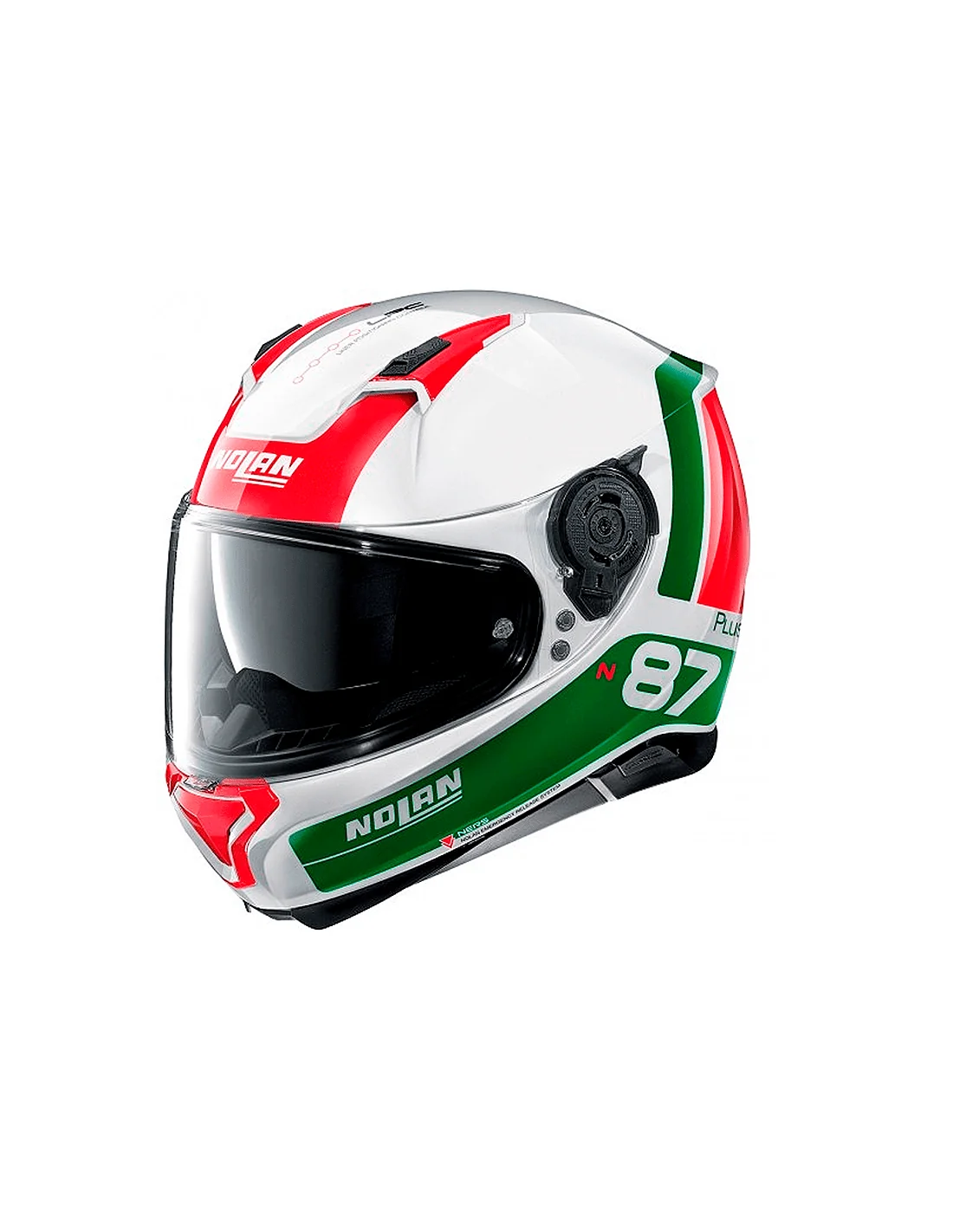 NOLAN N87 PLUS DISTINCTIVE N-COM BLANCO / VERDE / ROJO