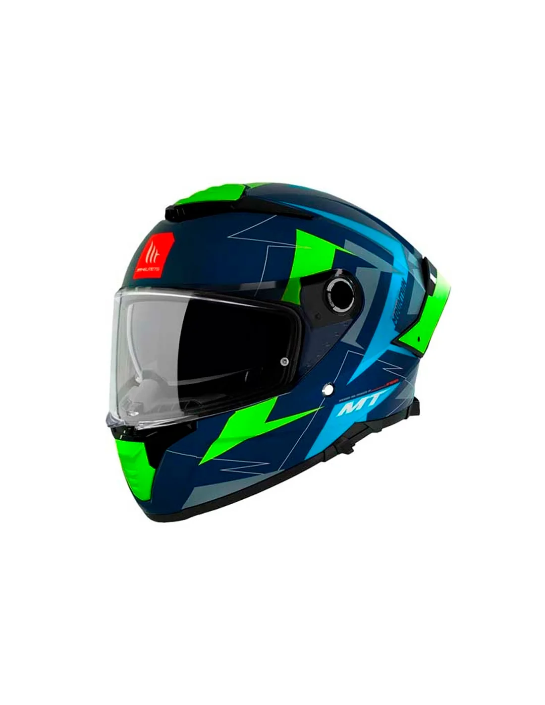 Casco integral deportivo con homologación ECE 22.06. Fabricado con combinación de polímeros (HIRP) que proporciona una protección excepcional contra los impactos. Dispone de visor solar interior y de sistema de ventilación MT-AFCS muy eficaz. Destaca por su estética deportiva gracias a su alerón trasero de estilo agresivo.