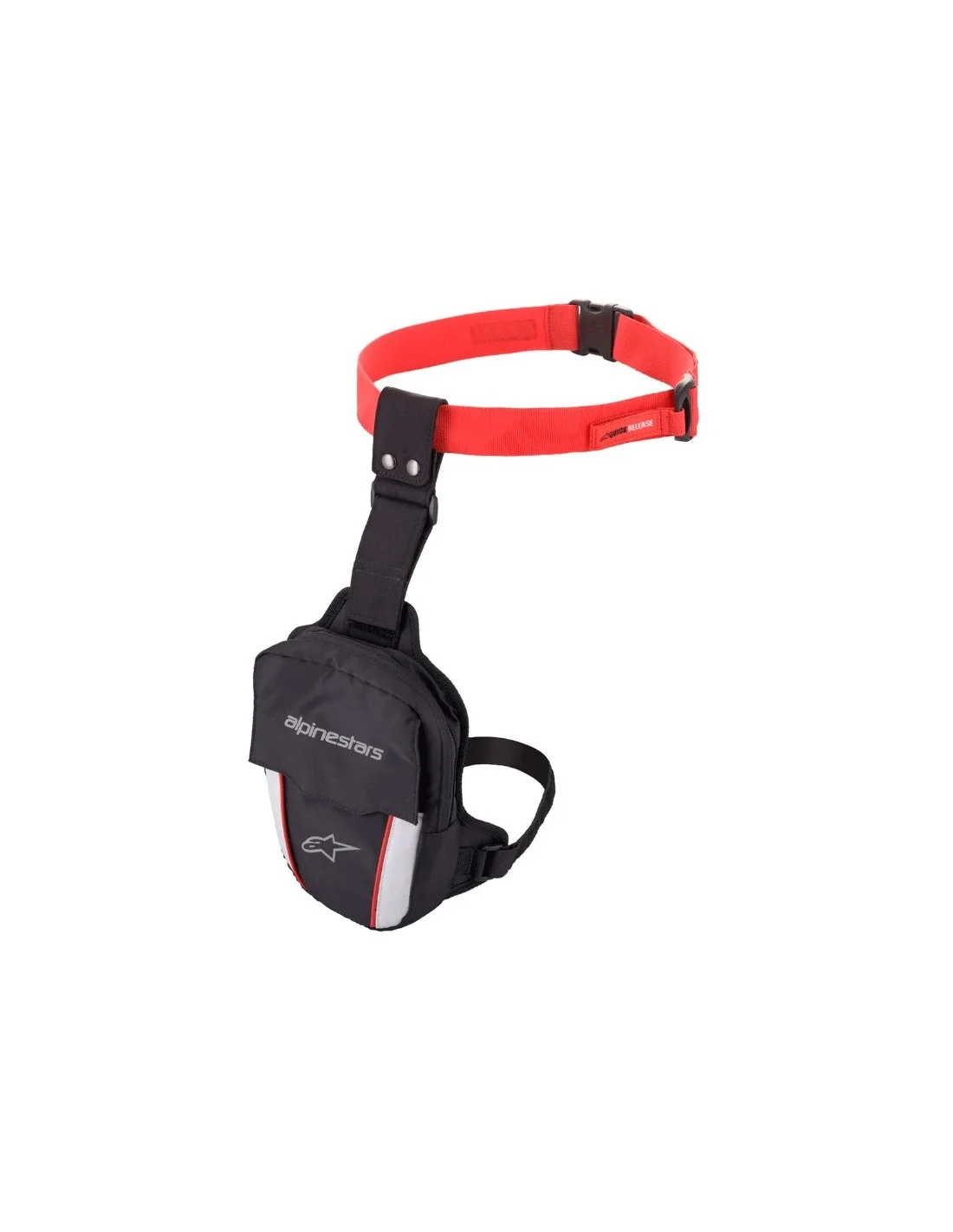 Bolsa Alpinestars Access Thig Bag Negra / Roja / Blanca. Bolsa de pierna muy práctica y funcional. Delgada y discreta, dispone de un compartimento principal con cierre superior mediante cremallera y de un bolsillo frontal impermeable con cierre de velcro.
