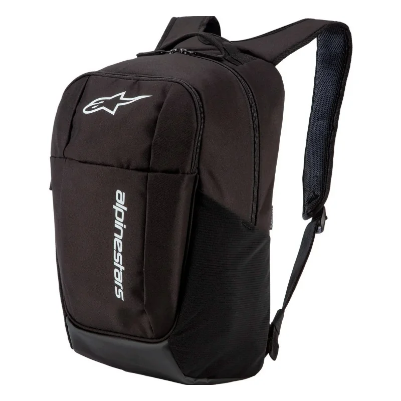 Mochila Alpinestars GFX V2 Negra . Mochila confeccionada en poliéster 600D. Cuenta con funda interna para portátil, bolsillos organizadores internos, bolsillo oculto y bolsillos laterales de malla para boptellas de agua. Correas y panel acolchada de malla transpirable. Logotipo de la marca en la parte frontal y capacidad de 15,9L.