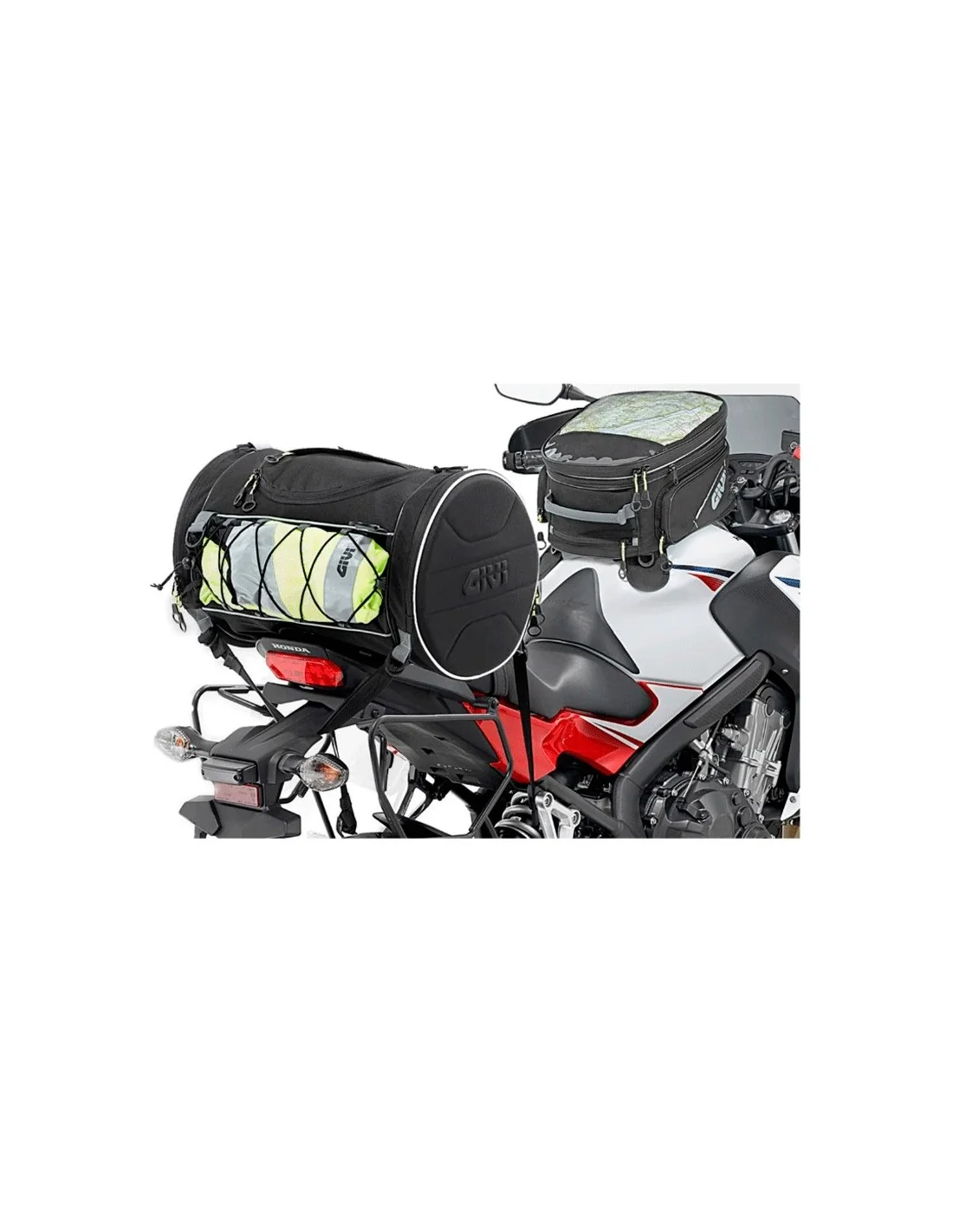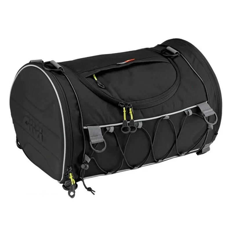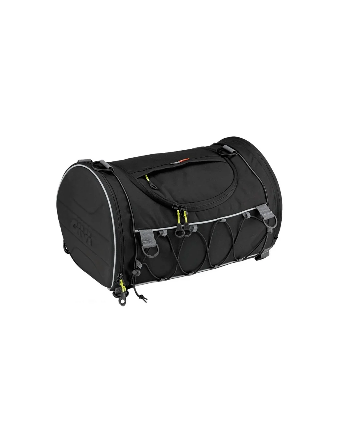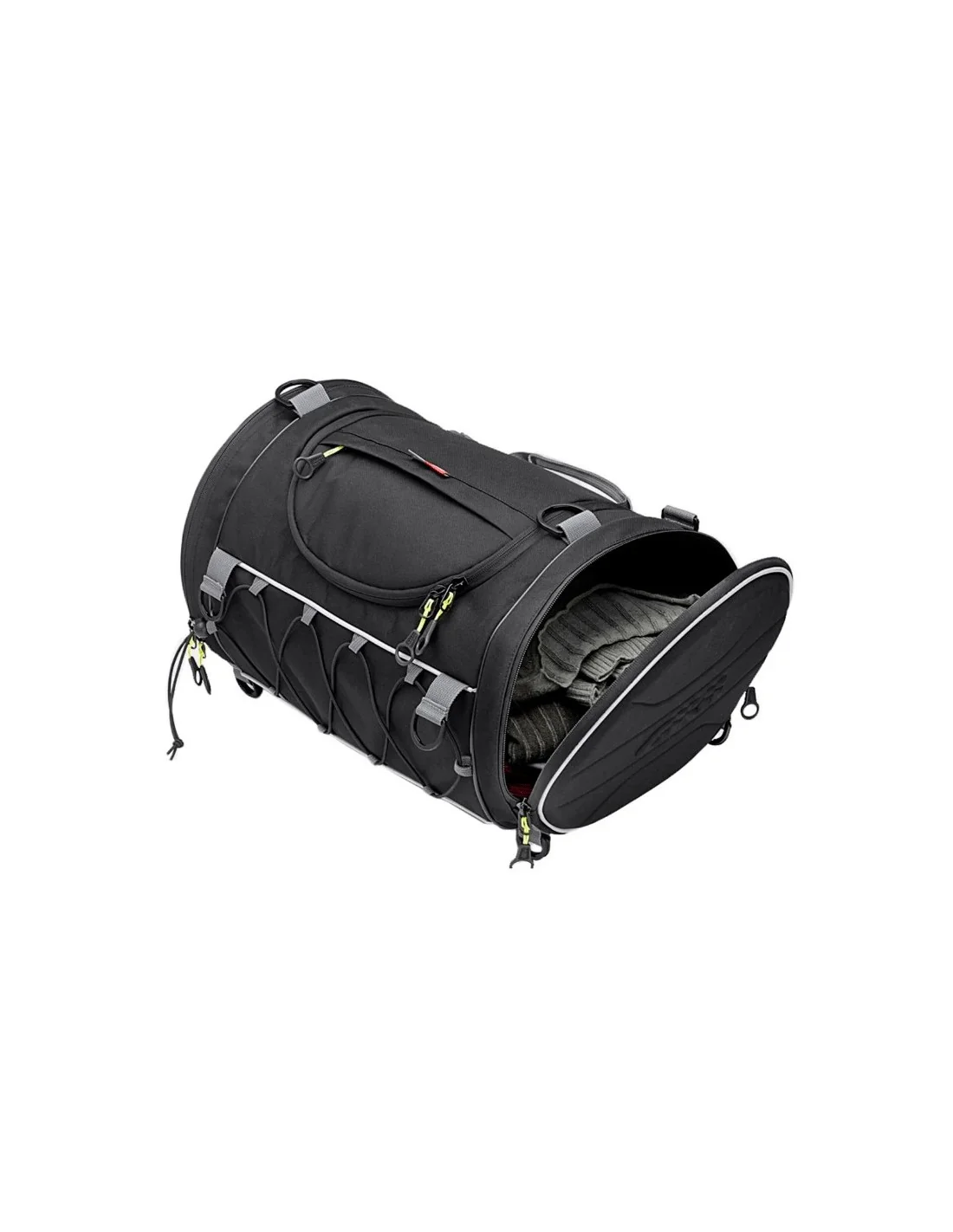 . Bolsa rulo de sillín confeccionada en poliuretano 600D. Los laterales están termoformados con espuma EVA y revestidos en poliéster para aumentar la rigidez y la estabilidad. Todo el producto está fabricado según la normativa Reach.