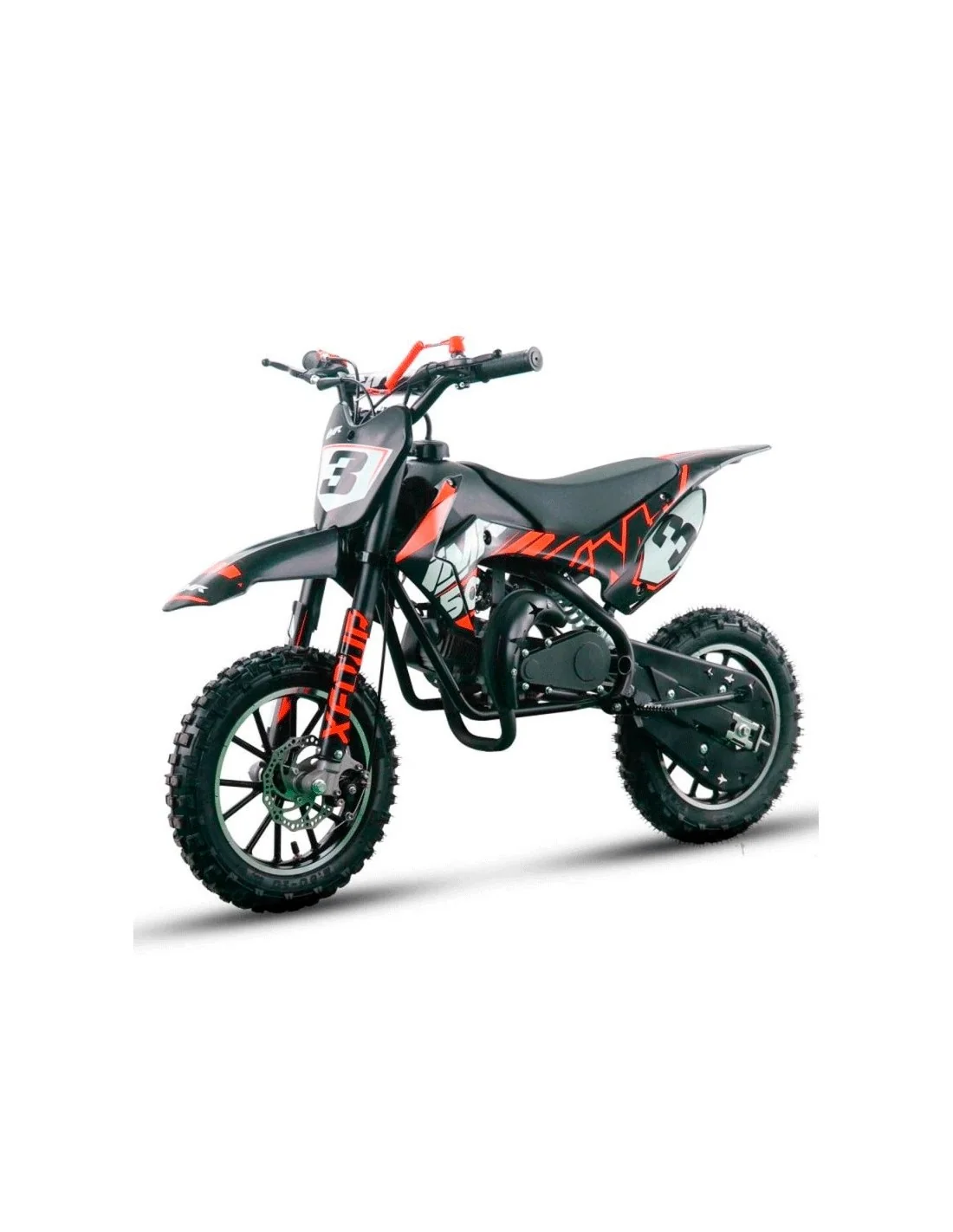La mejor manera para iniciar a los peques en tierra con la minicross 50 modelo Black Series de IMR! Con motor de 50cc y arranque por tirador! Seguridad en todo momento con sus protecciones antiquemaduras en escape y protector de cadena, horquilla invertida de 550mm y amortiguador no regulable de 210mm. Discos de freno de 140mm y coloridas ruedas de 10 pulgadas!