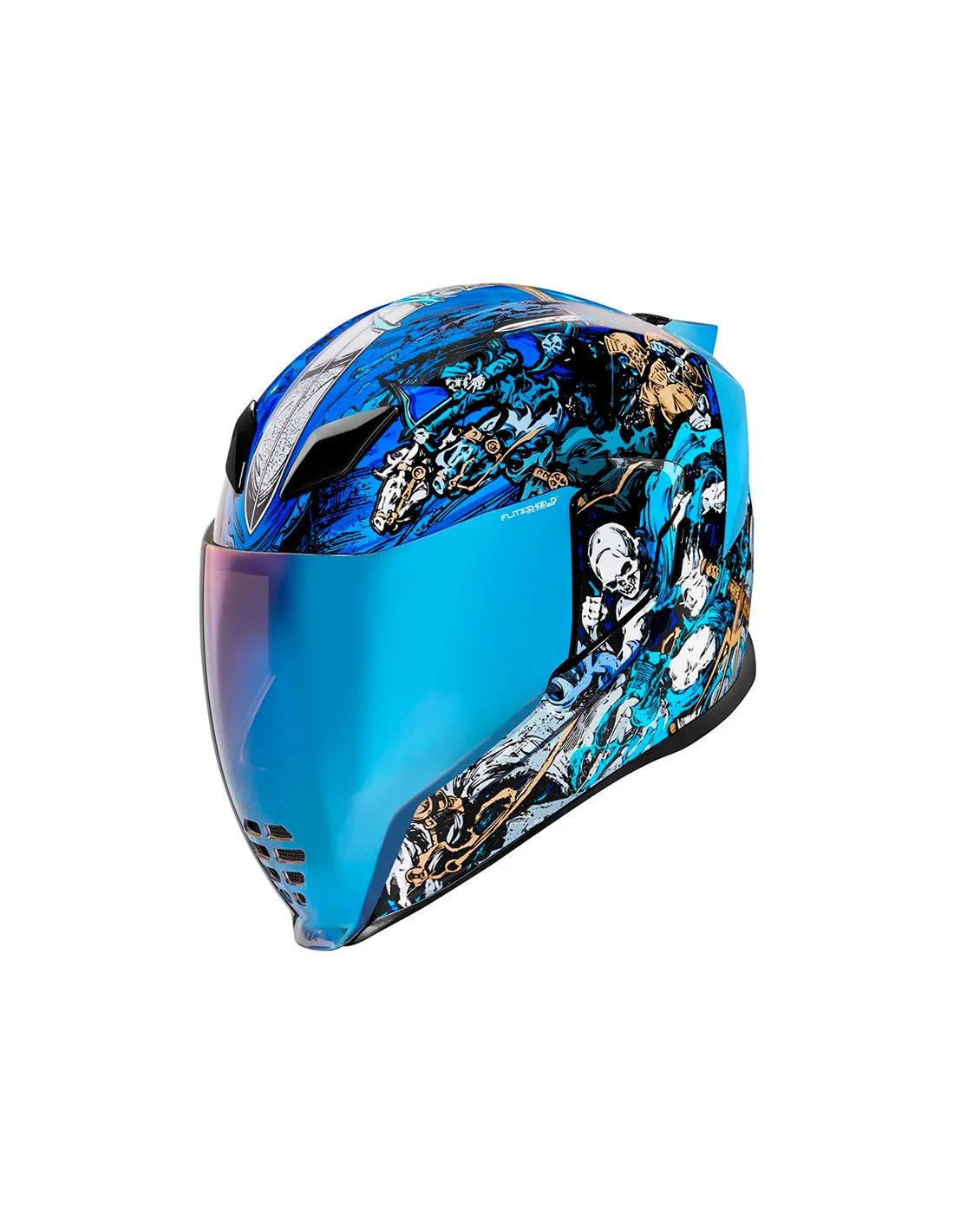 El ICON AIRFLITE destaca por su espectacular diseño, gracias a su pantalla que llega hasta la mentonera y sus llamativas gráficas. Diseñado para un uso sport-touring, el AIRFLITE está fabricado en policarbonato y su gran pantalla dispone de tratamiento anti-vaho y libre de distorsiones. Incorpora visor solar integrado y cierre de doble anilla, muy seguro. Dispone de certificación mundial DOT FMVSS 218 (EE. UU.), ECE 22-05 (Europa) y PSC (Japón).