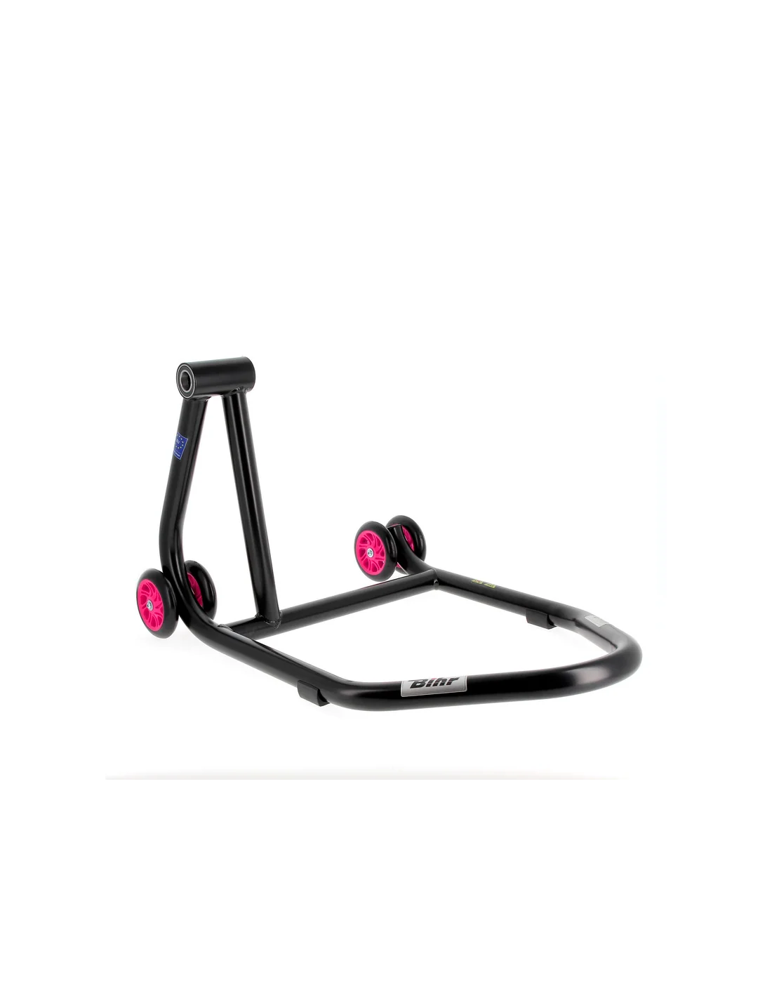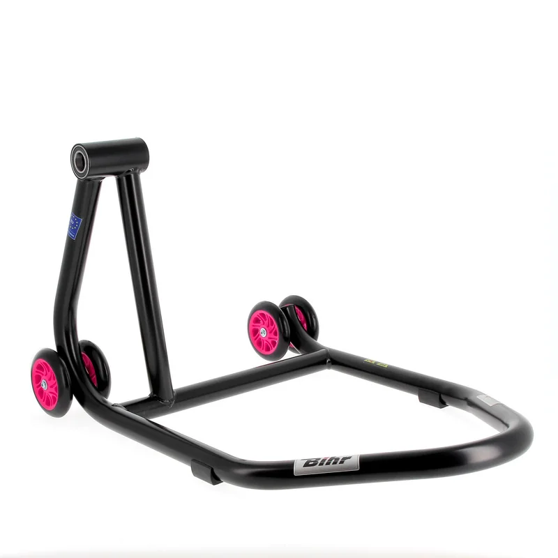 Caballete monobrazo izquierdo BIHR Home Track color negro mate y ruedas rosas. REF 3032146