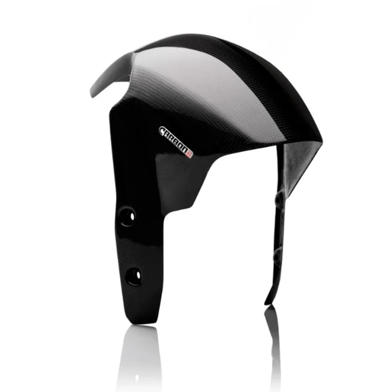 El Guardabarros Delantero de fibra de carbono de Carbon2race es un reemplazo directo de la pieza original y por lo tanto contribuye principalmente a una apariencia mucho mejor de tu moto, un ahorro de peso y una mayor rigidez de las piezas.