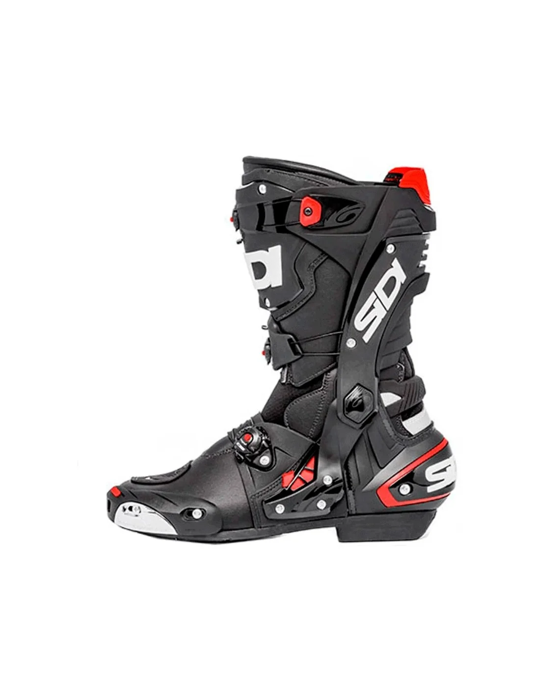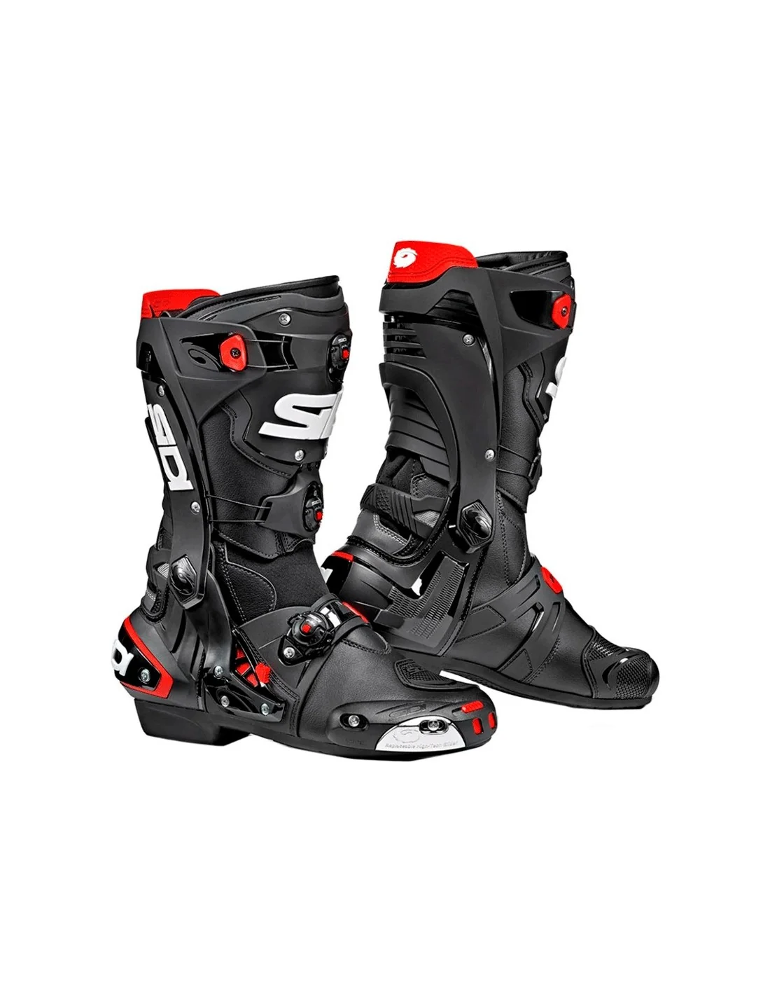 Botas Sidi Rex Negras. Botas de diseño agresivo para la conducción deportiva. Confeccionadas en TechnoMicro de alta resistencia a la abrasión con refuerzos estratégicos. Dispone de protecciones absorbentes a lo largo del tobillo, talón reforzado y deslizaderas con inserciones de aluminio en la zona de la puntera para mayor protección en caso de impacto. Los paneles elásticos y el forro interno ofrecen excelente ergonomía.