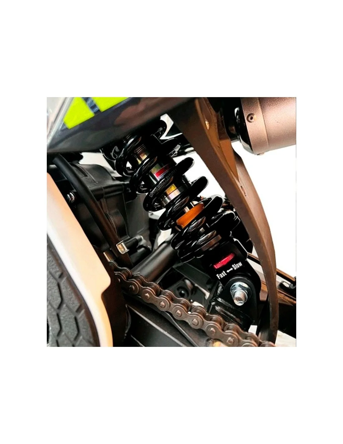 - Amortiguación trasera: Amortiguador DMN de 260mm / 800 libras.
