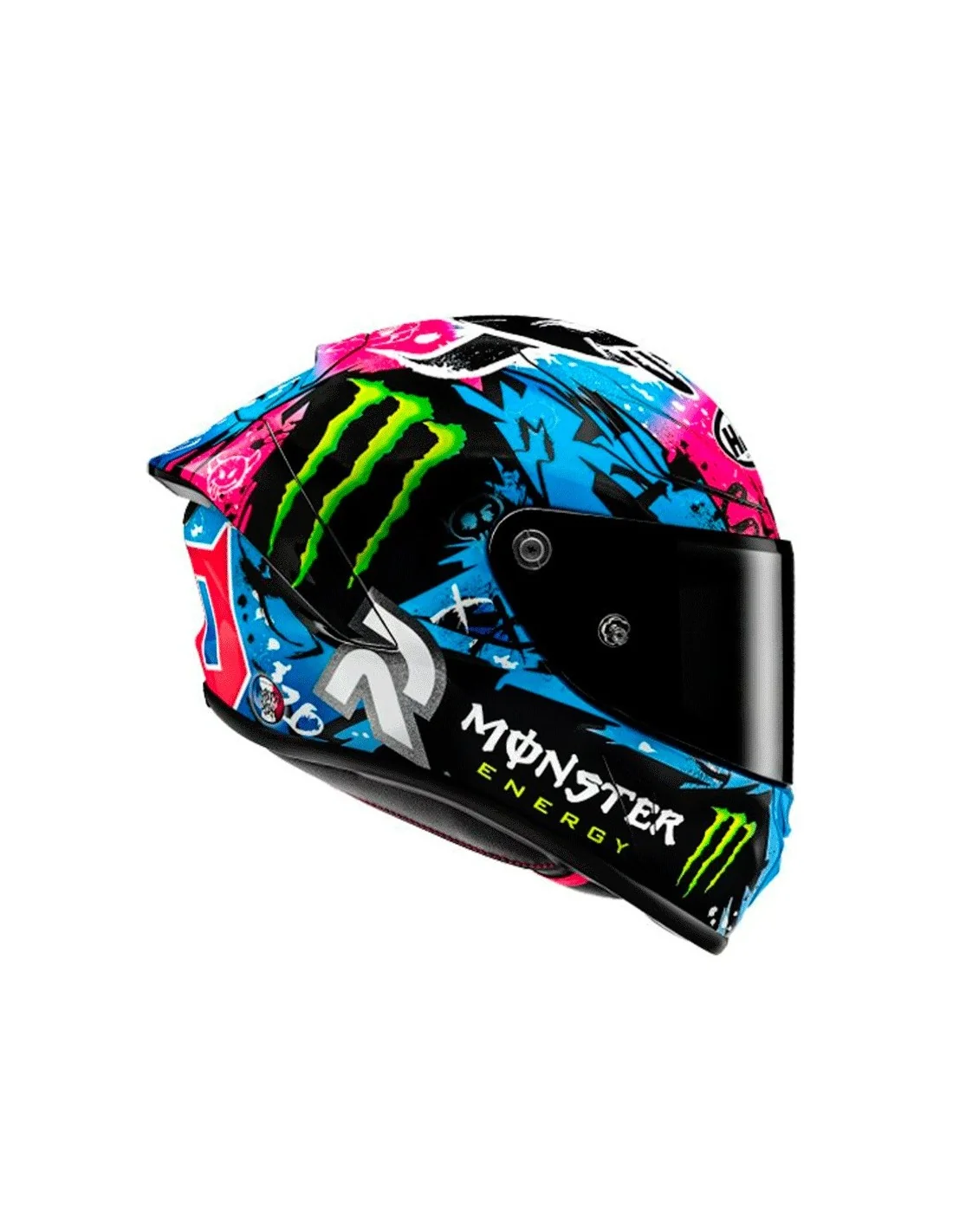 El diseño ofrece una replica exacta que Fabio Quartararo mostró en Le Mans 2024, exhibe un diseño con una base azul y detalles en rojo que resaltan el número 20 de FQ y pequeños acabados en rosa. Incluye el logotipo de Monster Energy y "El Diablo" transformado en un personaje diabólico con la lengua fuera con símbolos de tipo grafiti alrededor.