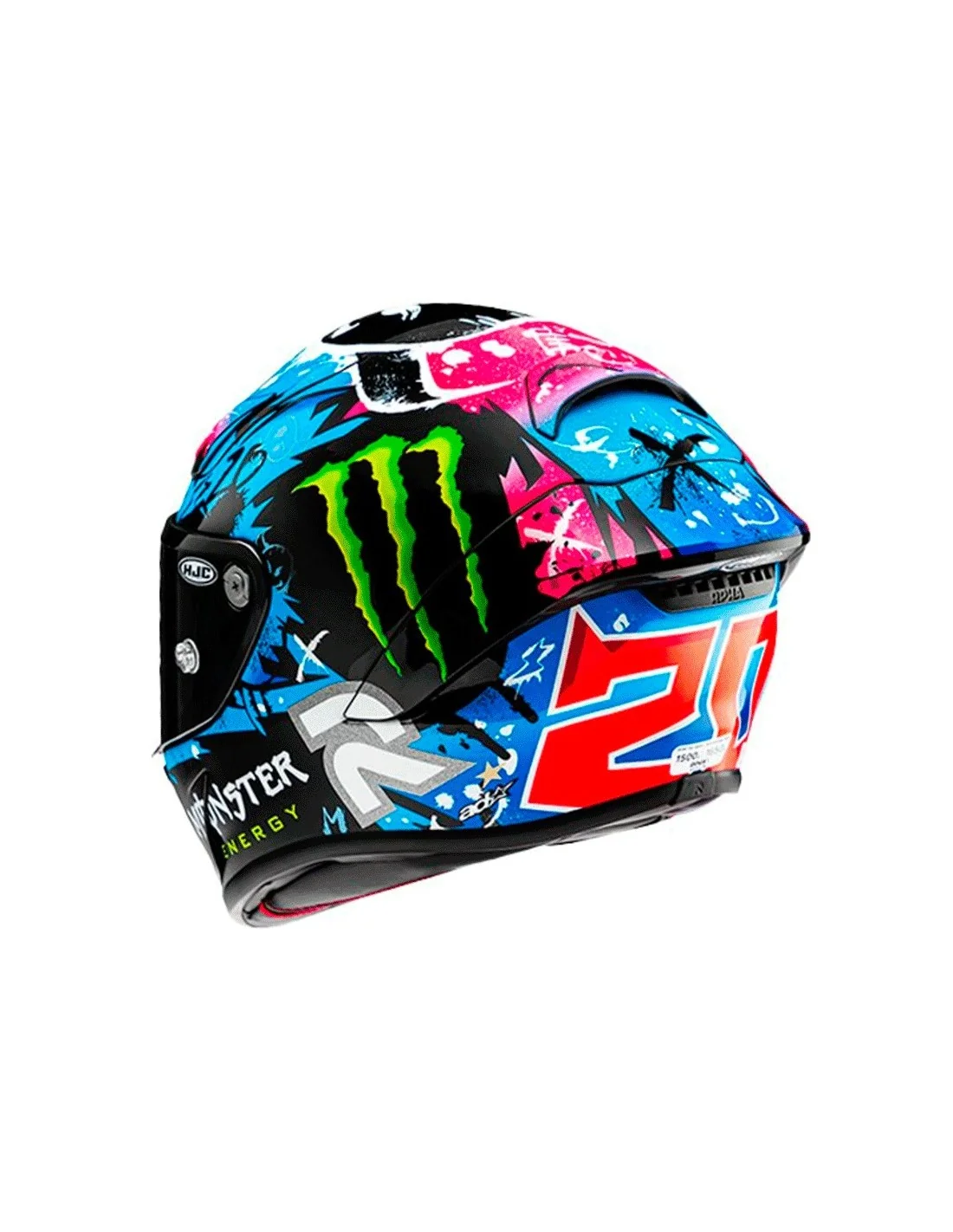 Casco HJC RPHA 1 Quartararo Le Mans SP MC28. El nuevo casco racing RPHA 1 está homologado según las normas de carreras de la FIM (FRHPhe-01) y la nueva normativa ECE 22.06. El RPHA 1 es el mismo modelo que utilizan los pilotos de HJC tanto en MotoGP como en WorldSBK. Dispone de acolchado interior Silvercool, de Pinlock 120 de serie y de un eficaz sistema de ventilación ACS probado en el túnel del viento. Destaca por ofrecer una avanzada aerodinámica y ofrece un excelente aislamiento acústico. El casco diseñado y desarrollado en MotoGP, ahora disponible para todos los pilotos.