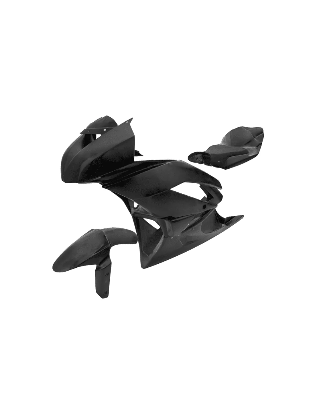 Carenado completo de circuito de gran calidad, fabricado en una combinación de resina de fibra y polímero compuesto. Estos materiales proporcionan una gran resistencia y permiten que sean muy ligeros.