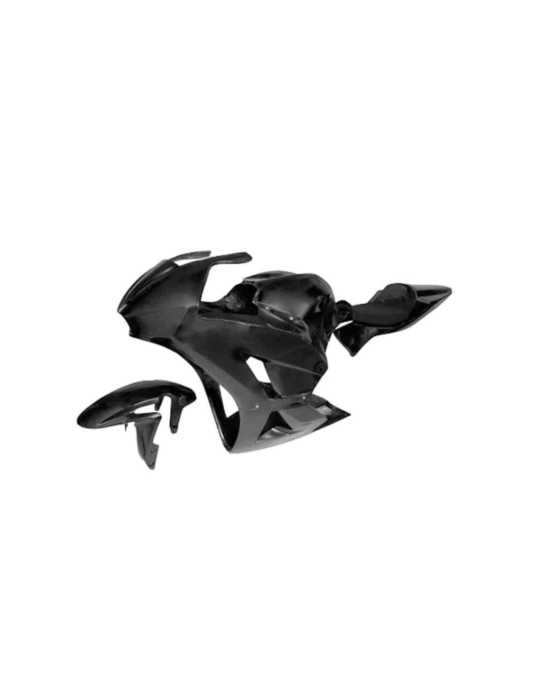 Carenado completo de circuito de gran calidad, fabricado en una combinación de resina de fibra y polímero compuesto. Estos materiales proporcionan una gran resistencia y permiten que sean muy ligeros.