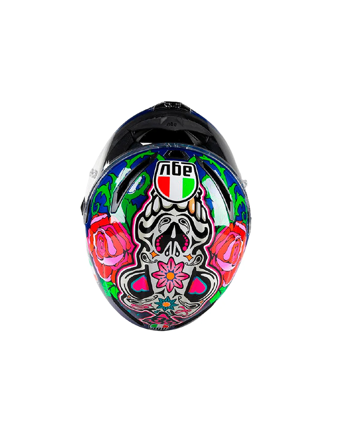 La forma del casco ha sido diseñada para favorecer la eficiencia aerodinámica y para minimizar el riesgo de que la energía generada por un eventual impacto se transmita a la zona de la clavícula. Las líneas de la parte trasera minimizan la interferencia con el mono de competición cuando el piloto está acoplado a la moto.