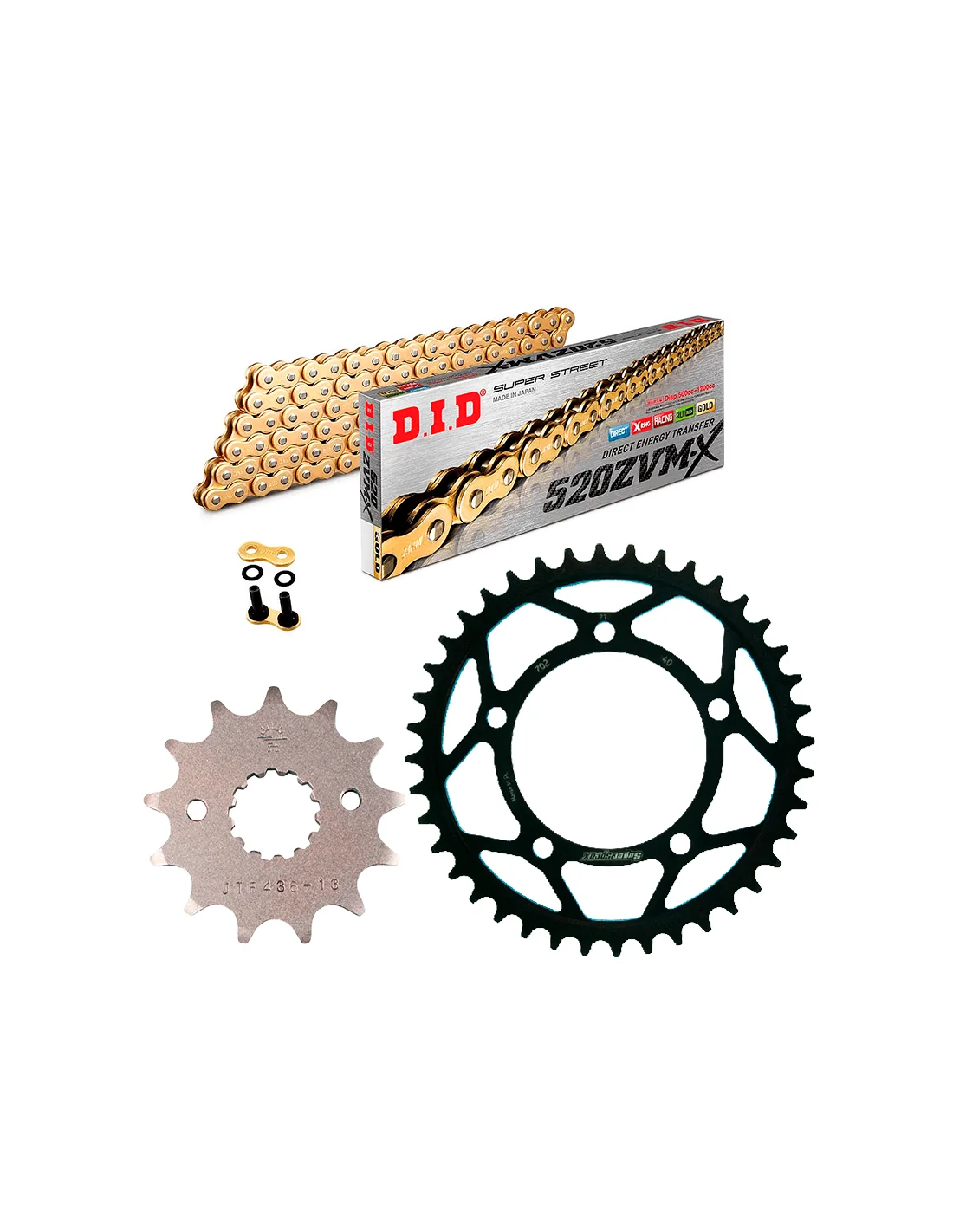 Los kit de transmisión están compuestos por cadena DID fabricante Japones que suministra a equipos de MOTO GP, SBK, MotoAmerica y distribuidor por todo el mundo. Piñón y corona SUPERSPROX también presentes en distintos campeonatos como SBK y en motos de producción.