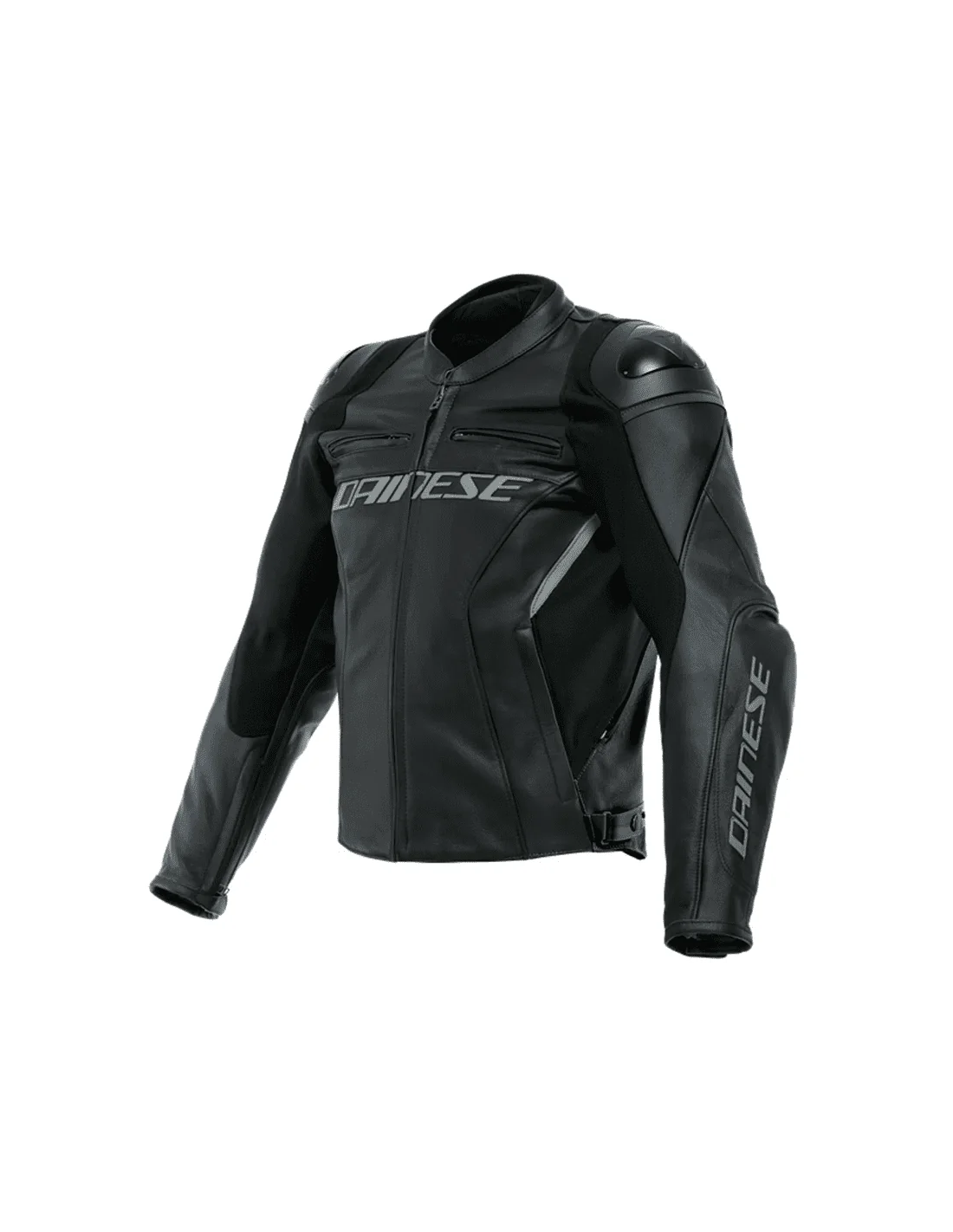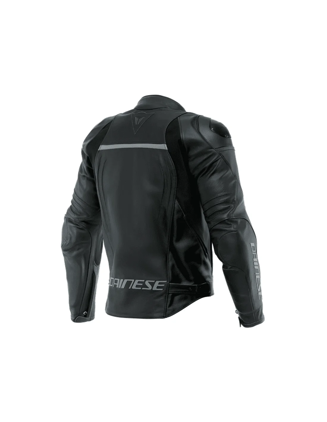 La chaqueta para moto Dainese Racing 4 está equipada con una cremallera en la parte inferior que permite conectarla a los pantalones para moto, así como con protectores compuestos certificados según la norma EN 1621.1 en codos y hombros, estos últimos protegidos además por placas exteriores de aluminio intercambiables -tecnología distintiva de Dainese- diseñadas para apoyar y facilitar el deslizamiento en caso de caída y evitar así rodar de forma peligrosa sobre el asfalto.
