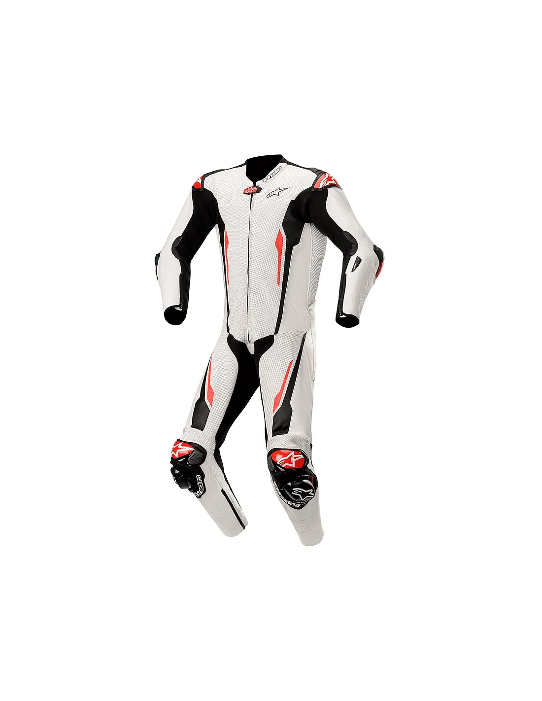 El traje de cuero Racing Absolute utiliza las lecciones aprendidas del Campeonato del Mundo de MotoGP y las aportaciones de los atletas de Alpinestars para crear un traje de carreras de última generación que establece nuevos puntos de referencia para la tecnología de protección disponible para los ciclistas. Un ejemplo de esto es el nuevo e innovador cuero de aramida que se encuentra en las áreas del traje propensas a la abrasión; los hombros, las rodillas, los codos, el antebrazo, el asiento y los lados de la espalda tienen esta capa adicional de protección junto con capas de cuero doble. Se ha demostrado que esta unión aramídica aumenta significativamente la resistencia al desgarro y la abrasión, al tiempo que protege al ciclista de la transferencia de calor, particularmente en el caso de un deslizamiento largo en la pista. El cuerpo mapeado para brindar un ajuste completo en las carreras, el Racing Absolute está hecho de cuero de canguro de primera calidad de 1,1 mm para altos niveles de resistencia a la abrasión.
