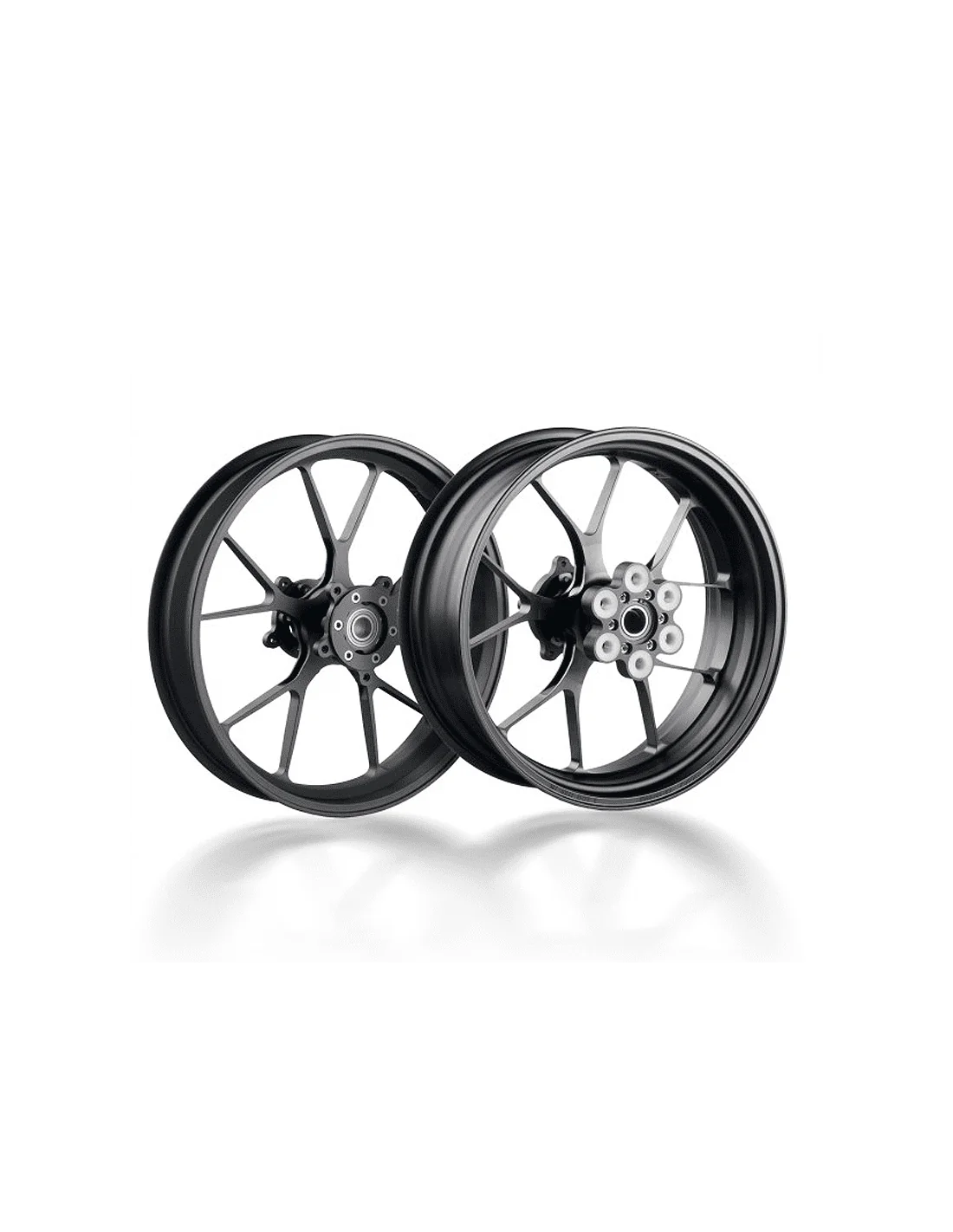 Cuando finaliza todo el proceso, el peso de la rueda trasera (17 * 5,5) es de 4,6 kg (Moto2 totalmente equipado Tipo 1.01) y la rueda delantera es de solo 2,75 kg (Moto2 totalmente equipado Tipo 1.01)!! En total, ofrece un ahorro de peso de más de 3,8 - 7,2 kg en comparación con las ruedas OEM según el modelo. El peso de carga de las ruedas estáticas en la rueda delantera es de 295 kg, en la rueda trasera de 375 kg. Está disponible en estos colores plata, negro, dorado, rojo, azul, verde, naranja, blanco, titanio y antracita.