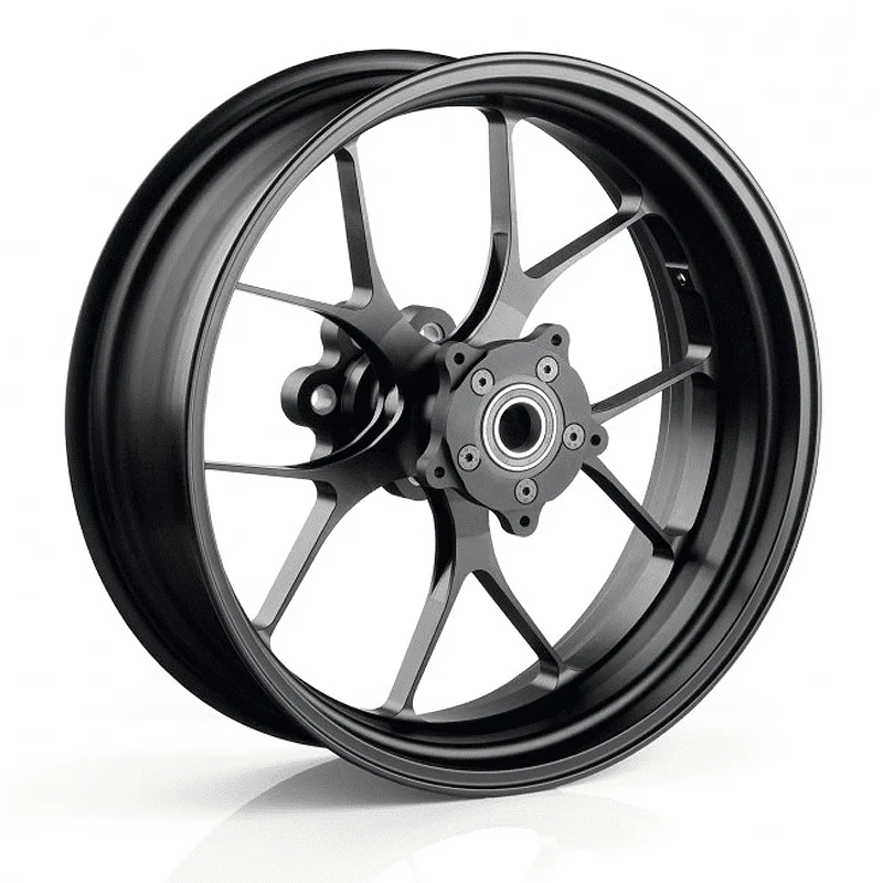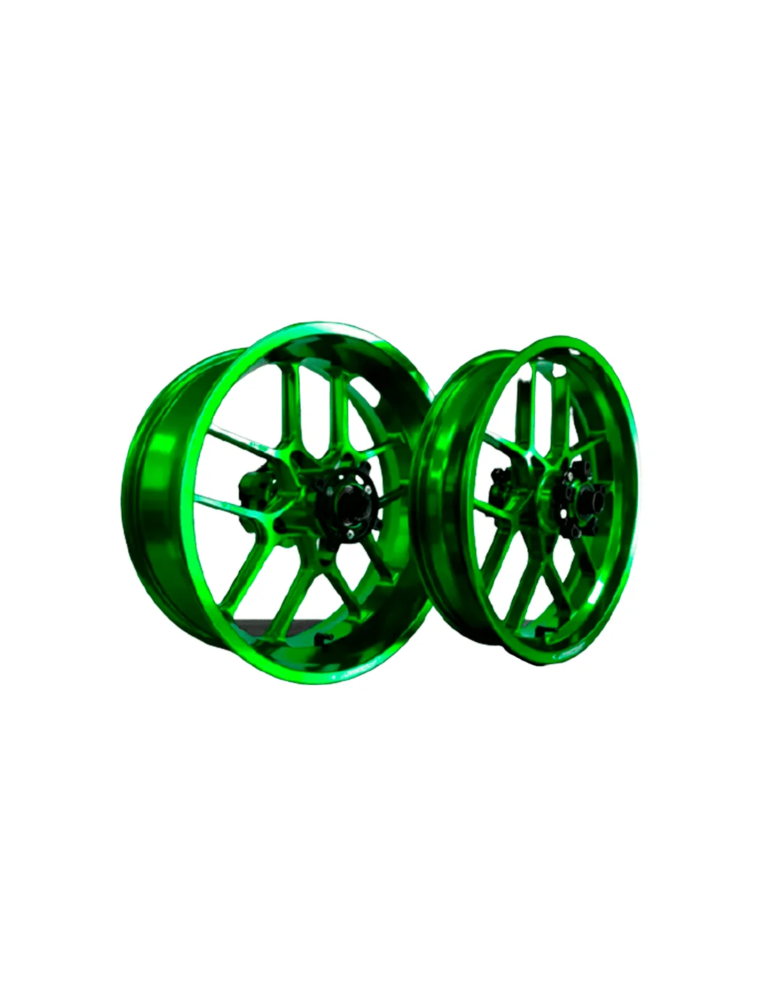 El proceso de fabricación de múltiples pasos de las llantas TITAX comienza con una sola pieza sólida de aluminio aeroespacial de alta calidad. Luego, se utiliza forja a alta presión (30 mil toneladas) para mejorar aún más la estructura del grano. Esta forja de alta presión es la única forma de crear el producto terminado más fuerte y rígido. Los espacios en blanco forjados se mecanizan luego en fresadoras controladas numéricamente por computadora (CNC) para garantizar que las superficies de los cojinetes, etc., sean perfectamente verdaderas. Para la rueda trasera partimos de una pieza de aluminio forjado de 25 kg, para la delantera 15 kg. Cuando finaliza todo el proceso, el peso de la rueda trasera (17 * 5,5) es de 4,6 kg (Moto2 totalmente equipado Tipo 1.01) y la rueda delantera es de solo 2,75 kg (Moto2 totalmente equipado Tipo 1.01)!! En total, ofrece un ahorro de peso de más de 3,8 - 7,2 kg en comparación con las ruedas OEM según el modelo. El peso de carga de las ruedas estáticas en la rueda delantera es de 295 kg, en la rueda trasera de 375 kg. Está disponible en estos colores plata, negro, dorado, rojo, azul, verde, naranja, blanco, titanio y antracita.