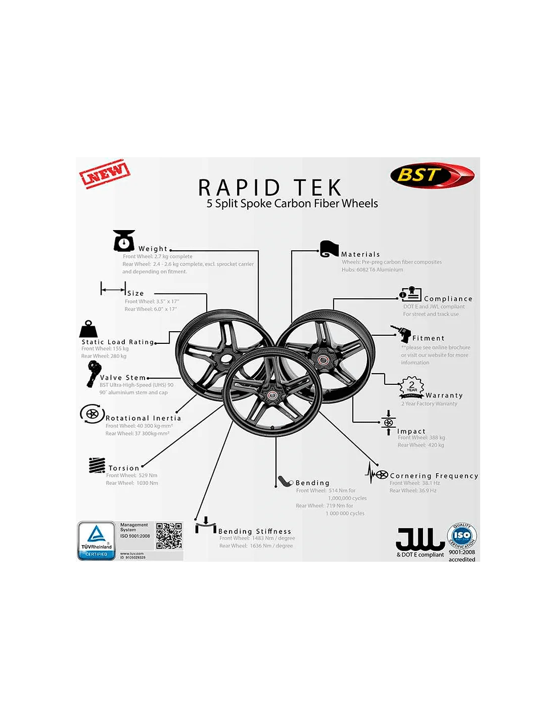 NOTA: BST para todas sus llantas requiere la homologación TUV-Cert alemana y el certificado de conformidad ISO 9000-2000, ofreciendo así la posibilidad de utilizarlas tanto en carretera como en pista cumpliendo con la normativa de tráfico.