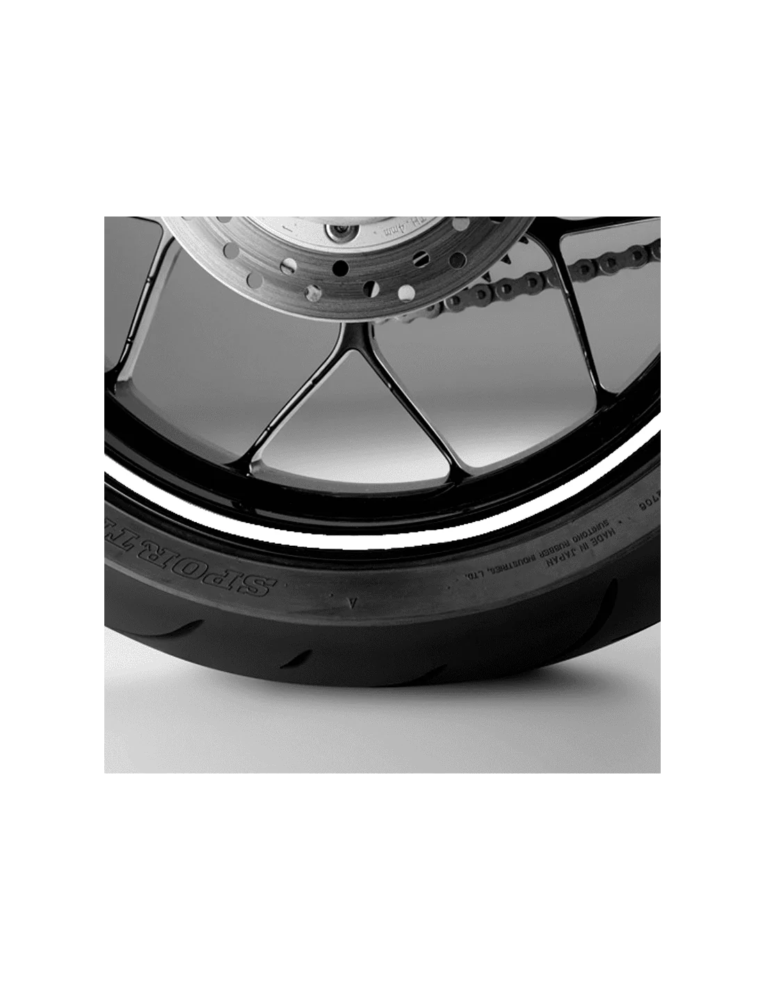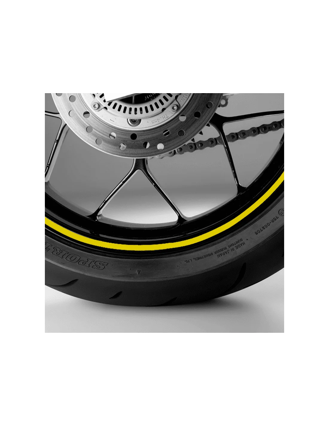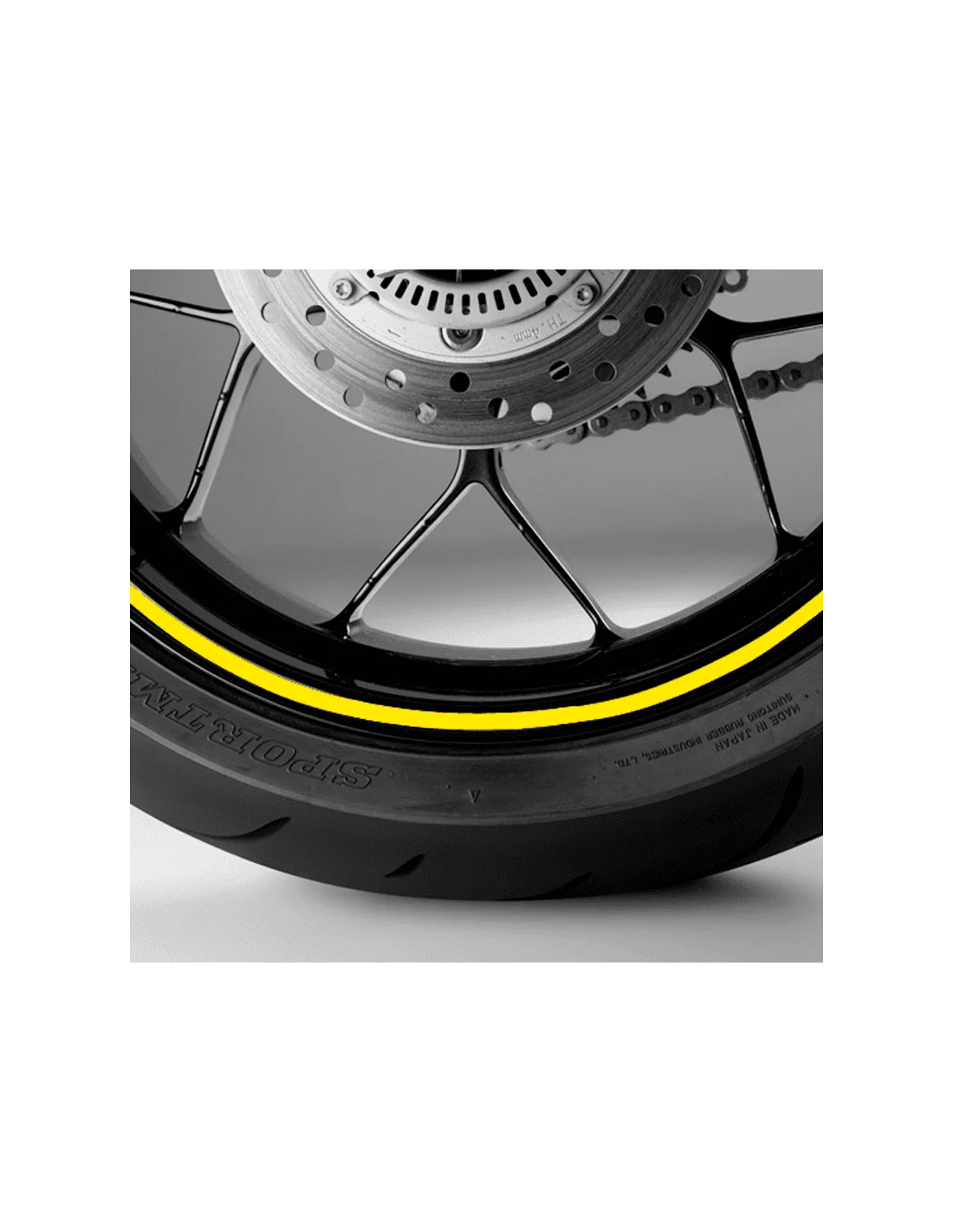 Tiras adhesivas con transportador. Rollo de 7 mm x 6 metros (2 ruedas) de tira para su aplicación en llantas de 16 a 18 pulgadas. Se coloca de forma muy sencilla y el aspecto final es impresionante.