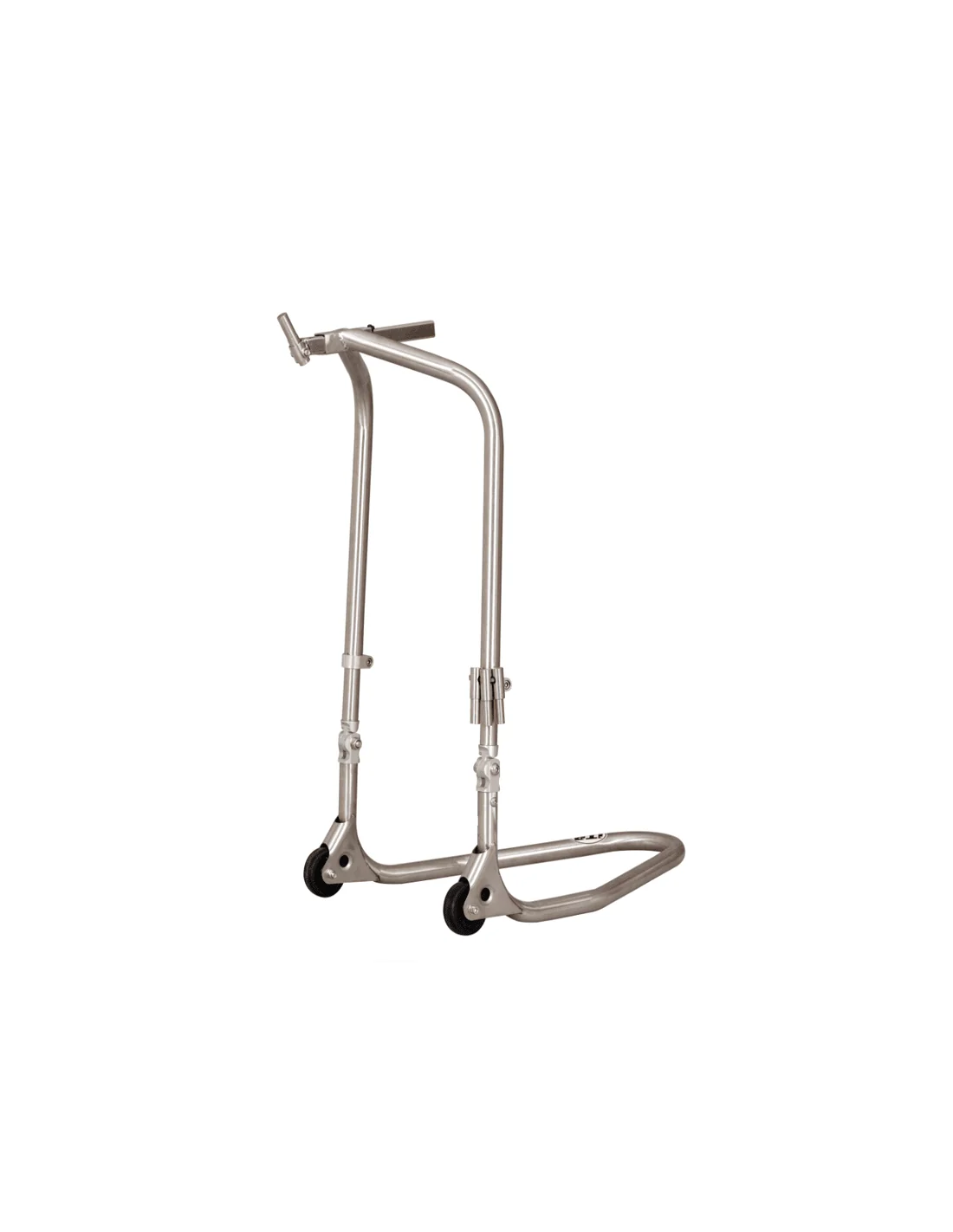 Este caballete permite levantar la parte delantera de la moto, desde las tijas, permitiendo liberar barras de horquillas y la rueda.