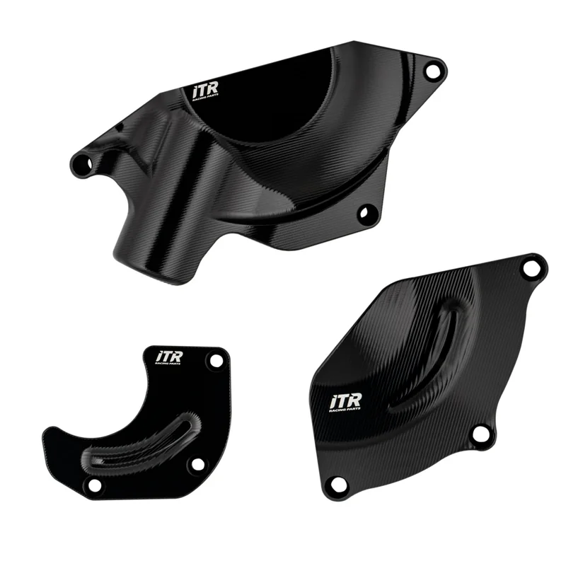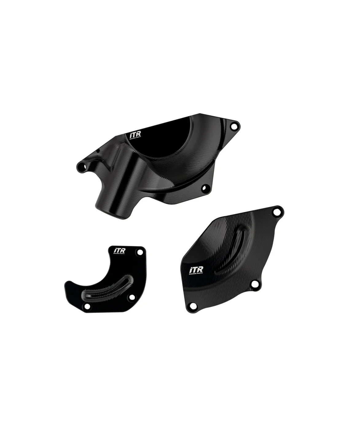 Tapas protectoras con Homologación para competir en FIM y en CEV. Juego de protectores de motor metálicos en aluminio negro, marca ITR. En color negro. Tapas de motor KAWASAKI ZX-10 R 2016-2020