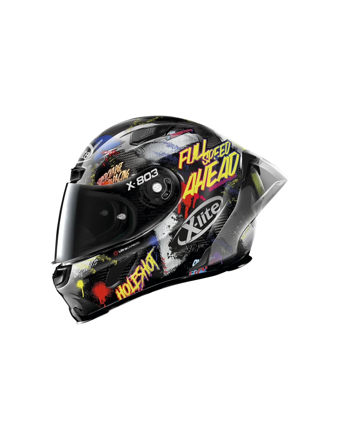 El nuevo X-LITE X-803 RS ULTRA CARBON es una nueva versión del conocido X-803, pero más enfocado a circuito gracias a su configuración "Racetrack Setup" que incorpora un nuevo alerón trasero de mayor tamaño (desmontable). Su calota está fabricada en fibra de carbono, muy ligera y resistente, y cuenta con 3 tamaños de calota para un mejor ajuste y un tamaño más compacto.