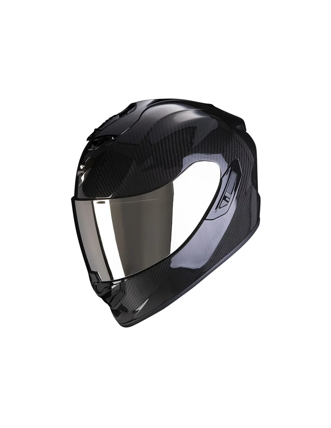 Casco Scorpion Exo-1400 Evo Carbon Air Negro. El Exo-1400 Evo Carbon Air fabricado en calota Ultra TCT® en fibra de carbono y fibra de vidrio que ofrecen alta ligereza y resistencia, el casco integral de Sport-Touring de Scorpion con homologación ECE 22.06. Ofrece mucha versatilidad y funcionalidad gracias a su sistema de ventilación, un sistema de ajuste Airfit, el visor solar interior Speedview™, el acolchado interior Kwikwick®3 y cierre de doble hebilla. Destaca por su estética deportiva, por ser muy ligero y cuenta con una acústica mejorada para hacerlo más silencioso.