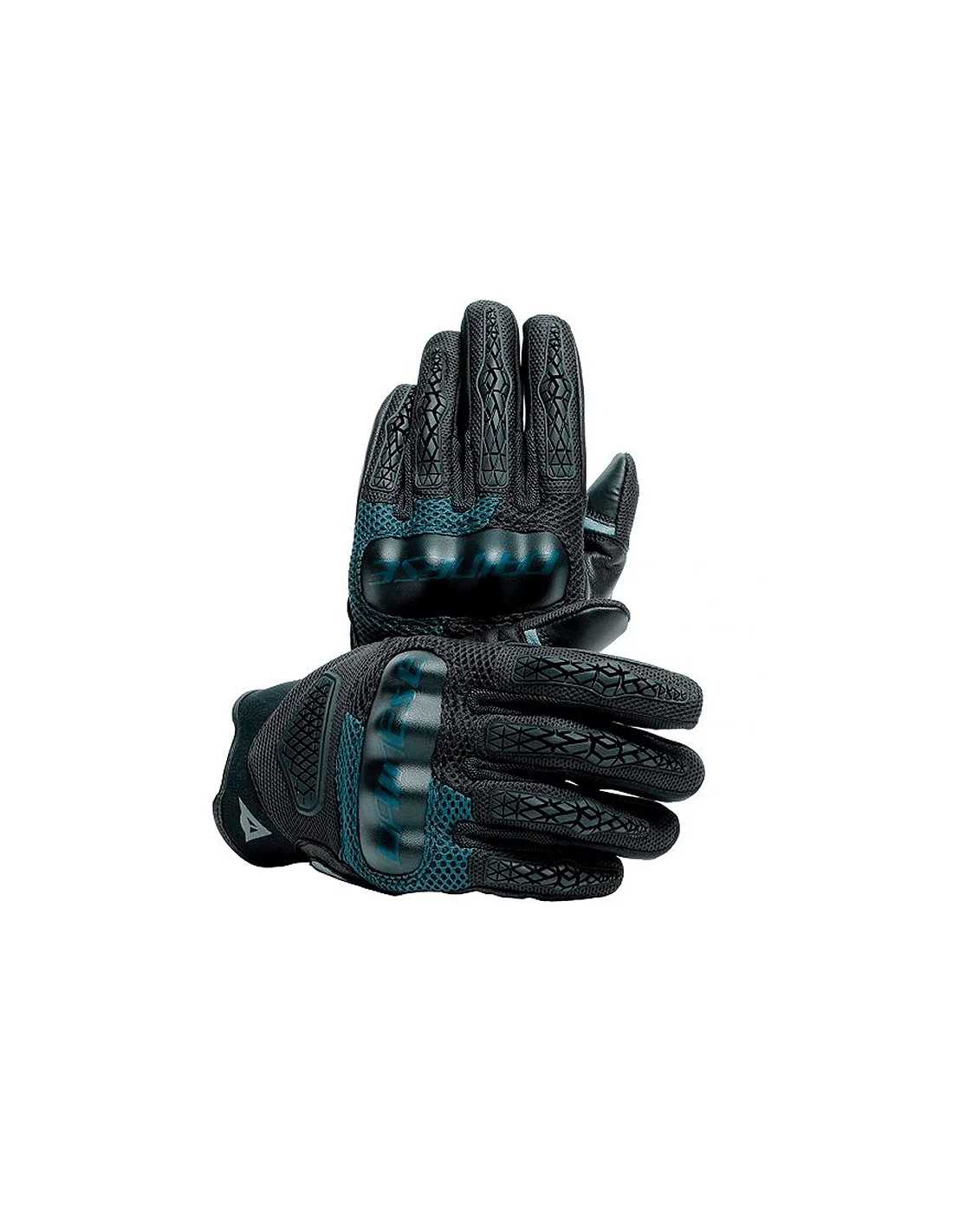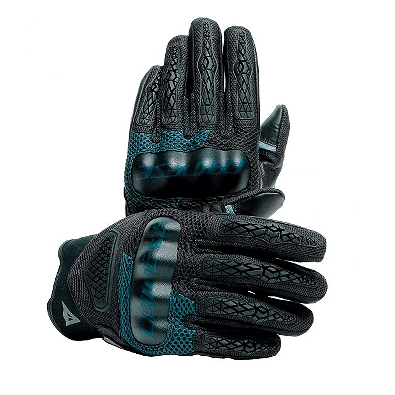 Guantes cortos con el dorso en tejido de malla para una excelente ventilación y la palma en piel de cabra para una excelente resistencia a la abrasión. Incorporan protecciones de poliuretano en los nudillos y refuerzos micro-inyectados estratégica mente ubicados para mayor seguridad. Cuentan con prácticos detalles, como el «Dainese Smart Touch» para poder usar pantallas táctiles sin quitarse los guantes y el «Dainese Visor Wiper» para poder limpiar fácilmente la pantalla del casco.