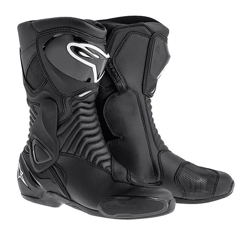 Botas Alpinestars S-MX 6 Negras. Botas anatómicamente perfiladas, especialmente indicadas para un uso deportivo en carretera y circuito. Las S-MX 6 cuentan con los últimos avances en el desarrollo de calzado de alto rendimiento de Alpinestars. Cada elemento ha sido cuidadosamente diseñado para ofrecer innovaciones en protección, una mejor ergonomía y máximo confort.