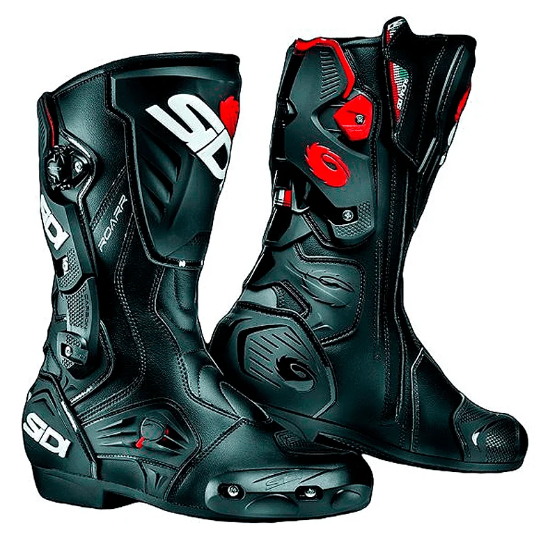 La nueva Sidi Roarr ofrece un diseño deportivo, niveles de seguridad excepcionales y un extraordinario confort gracias a los paneles elásticos que incorpora. Confeccionadas en ligera micro fibra con doble costura en las zonas expuestas a mayor tensión. Interior revestido en malla de Teflon para una buena transpiración del pie. Incorpora protecciones muy efectivas como una placa de nylon en la zona de la espinilla, protector amortiguador de TPU en el talón, soportes anti-torsión en los tobillos, sistema de vértebra patentado para proteger la zona del talón de Aquiles y deslizaderas reemplazables. Las botas Sidi Roarr están certificadas CE.