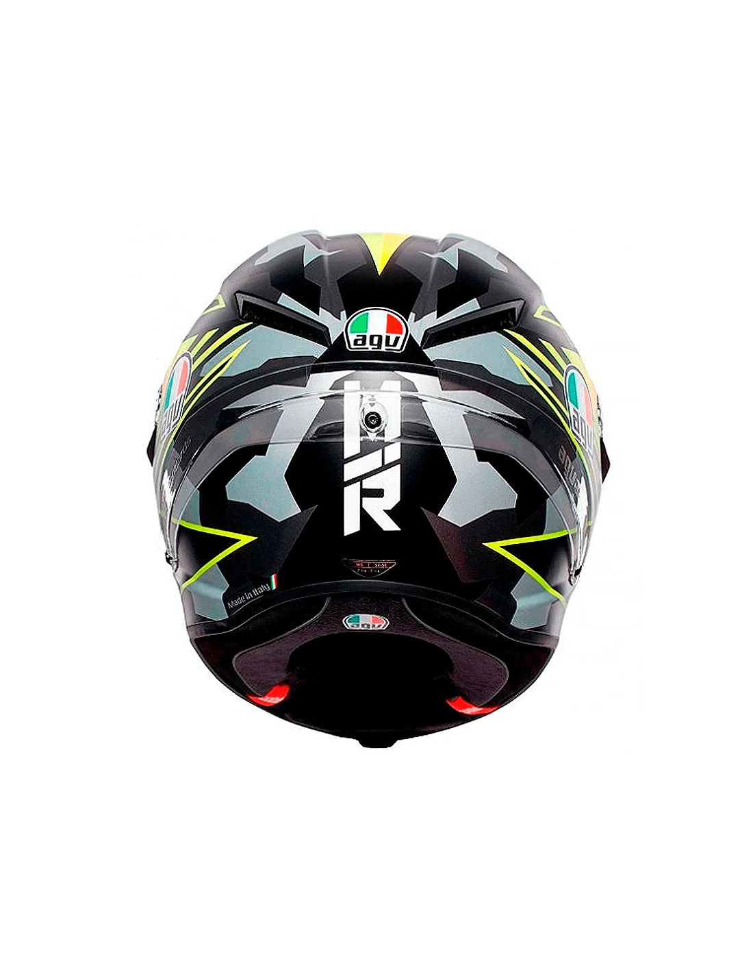 La forma del casco ha sido diseñada para favorecer la eficiencia aerodinámica y para minimizar el riesgo de que la energía generada por un eventual impacto se transmita a la zona de la clavícula. Las líneas de la parte trasera minimizan la interferencia con el mono de competición cuando el piloto está acoplado a la moto.