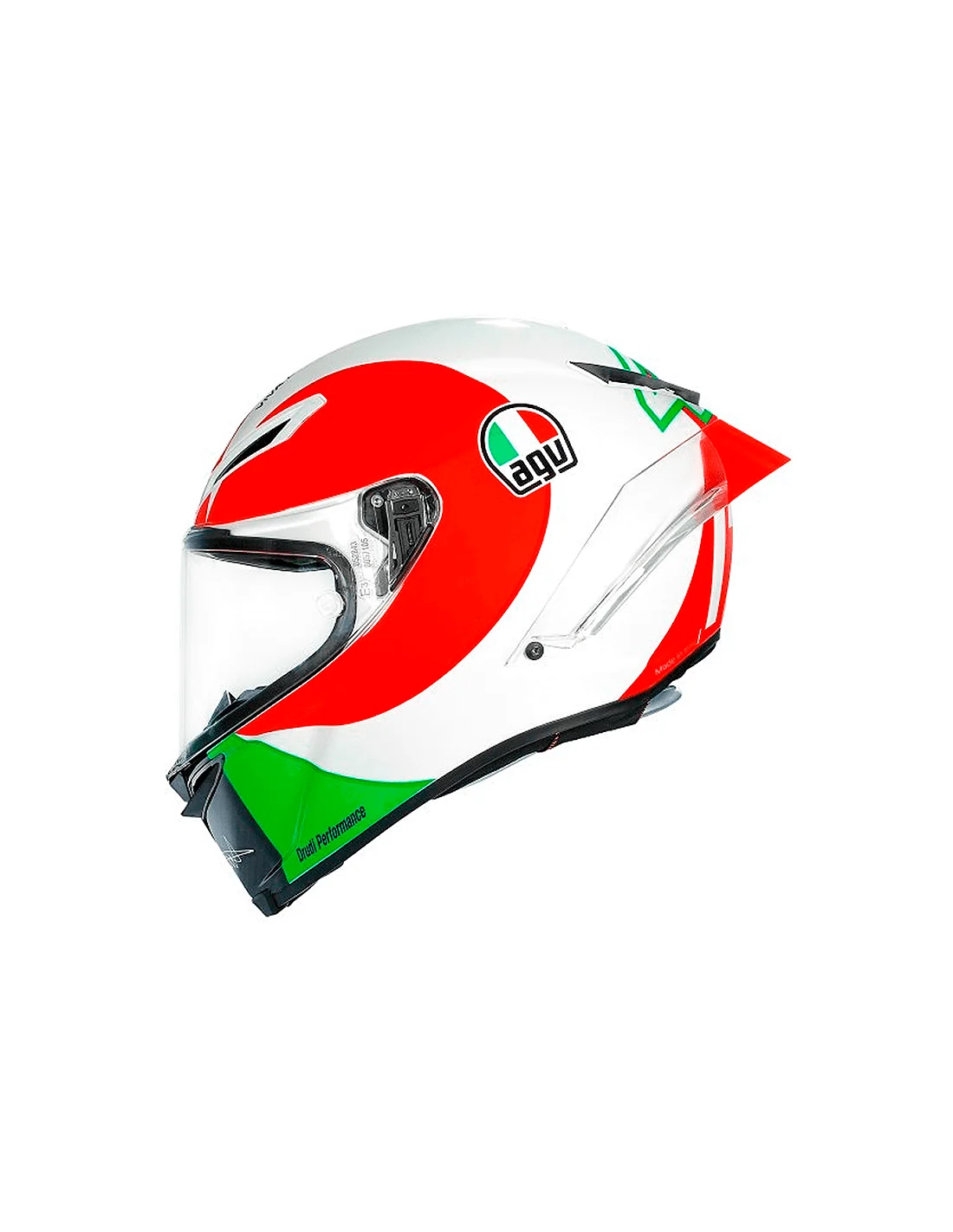 La forma del casco ha sido diseñada para favorecer la eficiencia aerodinámica y para minimizar el riesgo de que la energía generada por un eventual impacto se transmita a la zona de la clavícula. Las líneas de la parte trasera minimizan la interferencia con el mono de competición cuando el piloto está acoplado a la moto.