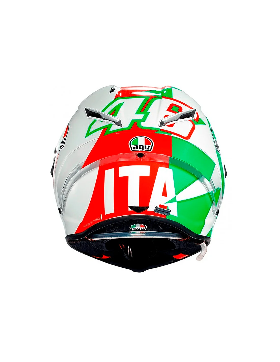 El interior es totalmente desmontable y lavable y ha sido desarrollado por los pilotos AGV de MotoGP. La corona del cuello permite una entrada fácil del casco y maximiza la ventilación. Se incluyen espumas de distintos grosores para un ajuste personalizado de la zona superior del casco y las carrilleras.