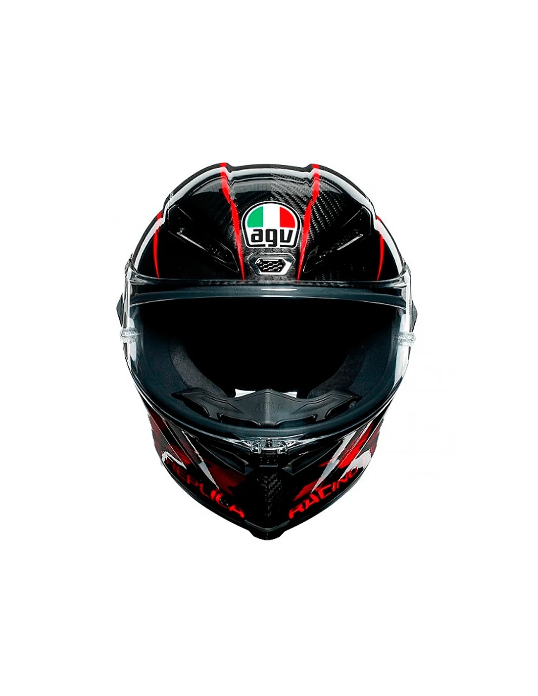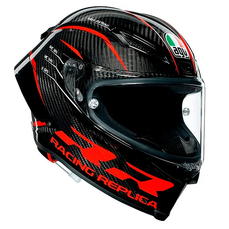 El casco desarrollado en MotoGP, ahora disponible para todos los pilotos. Se trata del mismo casco utilizado por los pilotos profesionales de AGV en Moto GP y Superbikes. El Pista GP RR dispone de Homologación FIM, que certifica un nivel de exigencia sin igual en términos de seguridad y protección. Su calota exterior 100% realizada en fibra de carbono, ofrece unas líneas que minimizan la interferencia con el mono de competición y su interior con ajuste adaptable, evita las costuras en las zonas más sensibles. Dispone de ventilaciones metálicas desarrolladas en MotoGP y de spoiler trasero para mejorar las prestaciones aerodinámicas y la estabilidad a alta velocidad. Cada detalle ha sido diseñado para asegurar el máximo rendimiento.
