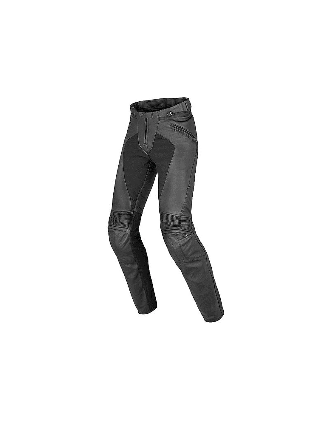 Pantalón con patronaje de mujer confeccionado en piel bovina y tejido S1. Dispone de protecciones compuestas extraíbles en la zona de la rodilla y tibia, y protecciones blandas Pro-Shape en la zona de las caderas (ambas certificadas según la norma EN 1621.1/97). Incorpora inserciones elásticas para mayor libertad de movimiento. Forro interior Sanitized. Cintura regulable. 2 bolsillos exteriores. Cremallera de conexión chaqueta-pantalón y doble cremallera en la parte baja de la pierna.