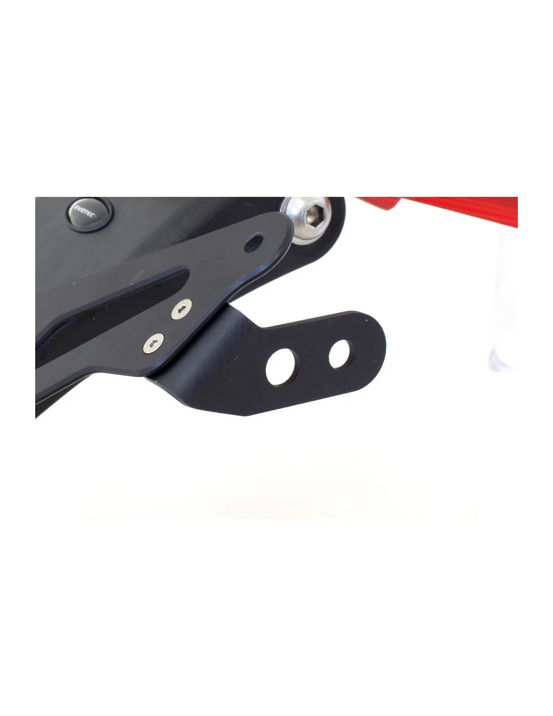Este accesorio está fabricado en aluminio aeronautico cortado al laser y se atornilla a todos los porta placa evotech mediante 2 tornillos.