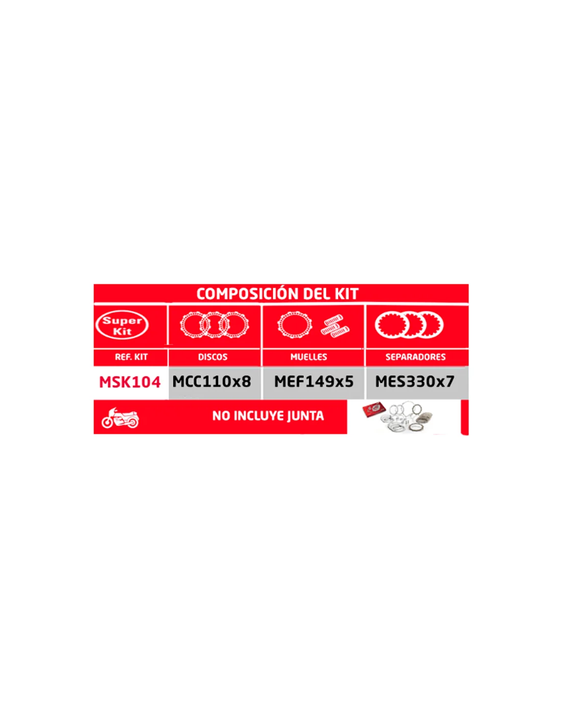 Kit discos embrague TRW MSK104 Super Kit (no incluye junta). Kit de discos de fricción de embrague MSK104 Super Kit con separadores y muelles incluidos. Los discos de embrague TRW están fabricados con un revolucionario material de fricción en embragues.