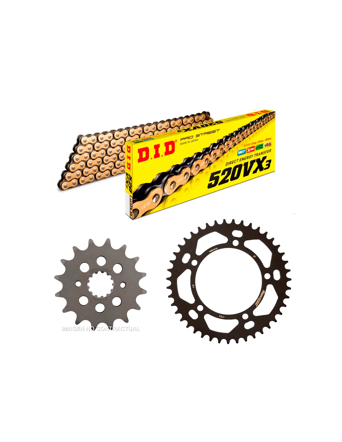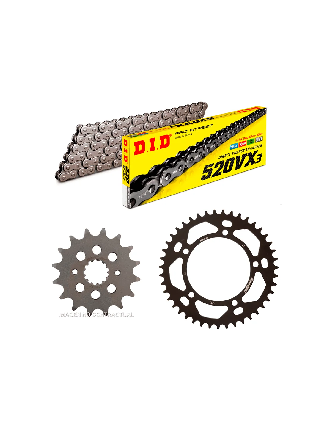 Los kit de transmisión están compuestos por cadena DID fabricante Japones que suministra a equipos de MOTO GP, SBK, MotoAmerica y distribuidor por todo el mundo. Piñón y corona SUPERSPROX también presentes en distintos campeonatos como SBK y en motos de producción.