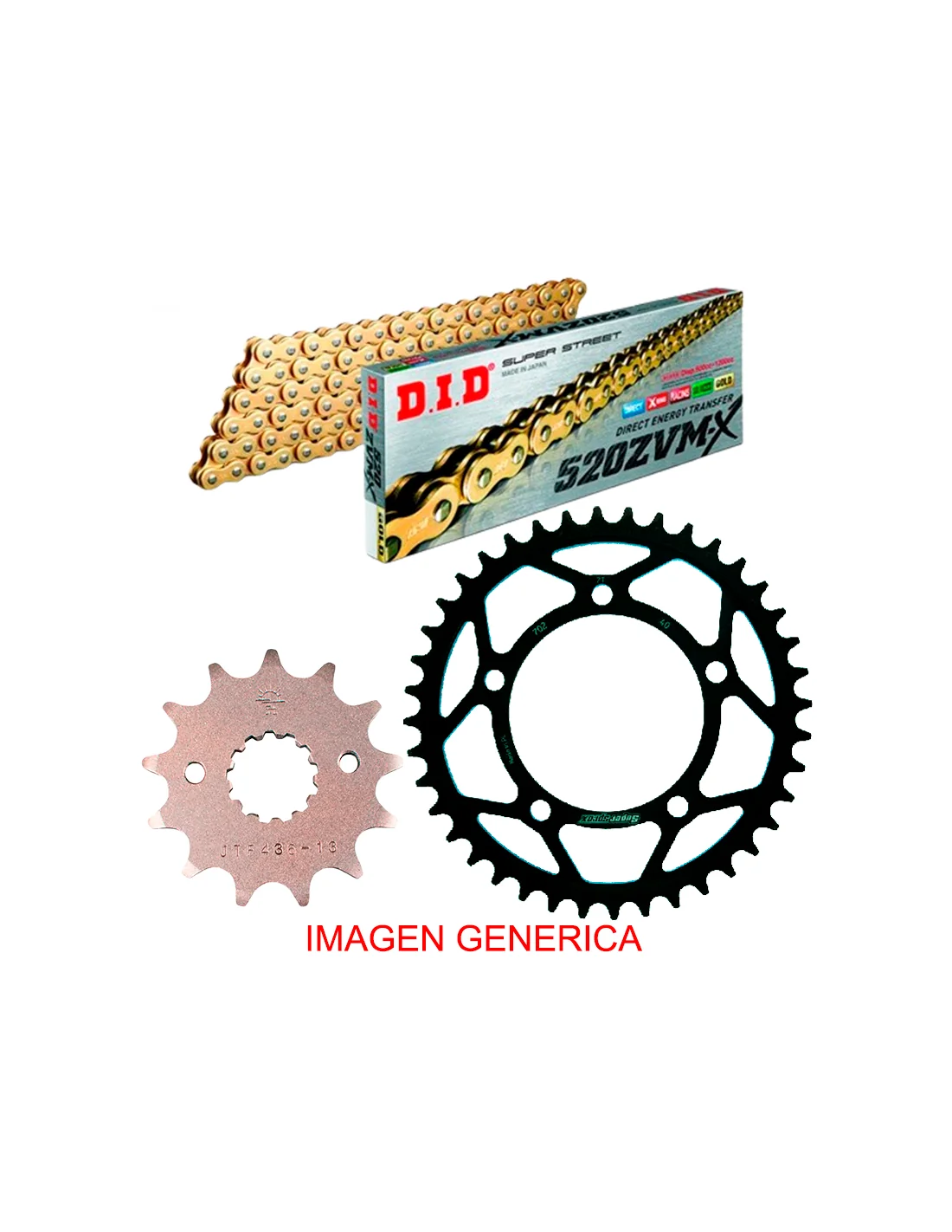 Los kit de transmisión están compuestos por cadena DID fabricante Japones que suministra a equipos de MOTO GP, SBK, MotoAmerica y distribuidor por todo el mundo. Piñón y corona SUPERSPROX también presentes en distintos campeonatos como SBK y en motos de producción.