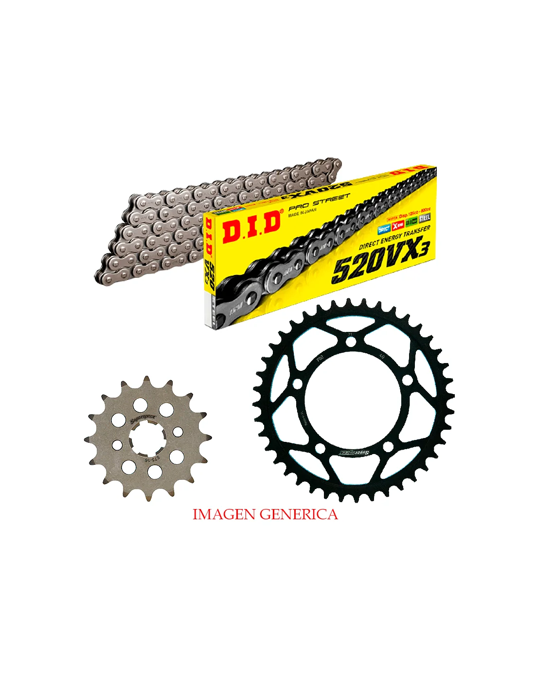 Los kit de transmisión están compuestos por cadena DID fabricante Japones que suministra a equipos de MOTO GP, SBK, MotoAmerica y distribuidor por todo el mundo. Piñón y corona SUPERSPROX también presentes en distintos campeonatos como SBK y en motos de producción.