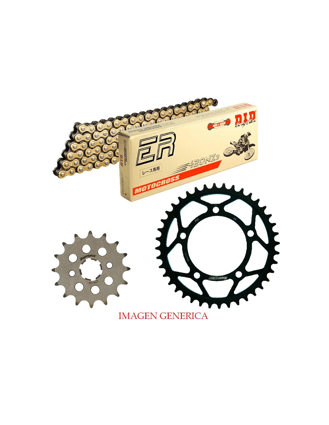 Los kit de transmisión están compuestos por cadena DID fabricante Japones que suministra a equipos de MOTO GP, SBK, MotoAmerica y distribuidor por todo el mundo. Piñón y corona SUPERSPROX también presentes en distintos campeonatos como SBK y en motos de producción.