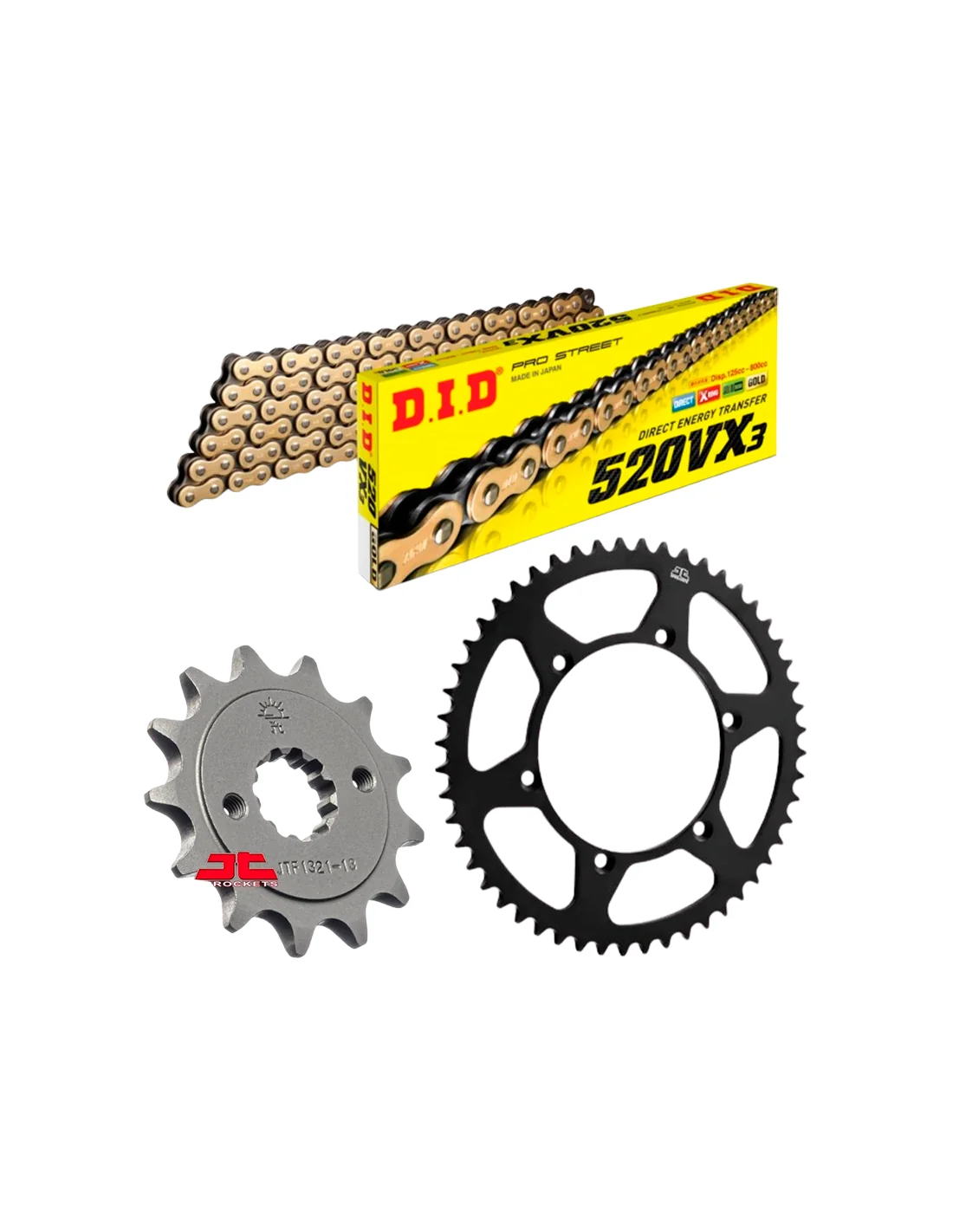 Los kit de transmisión están compuestos por cadena DID fabricante Japones que suministra a equipos de MOTO GP, SBK, MotoAmerica y distribuidor por todo el mundo. Piñón y corona SUPERSPROX también presentes en distintos campeonatos como SBK y en motos de producción.