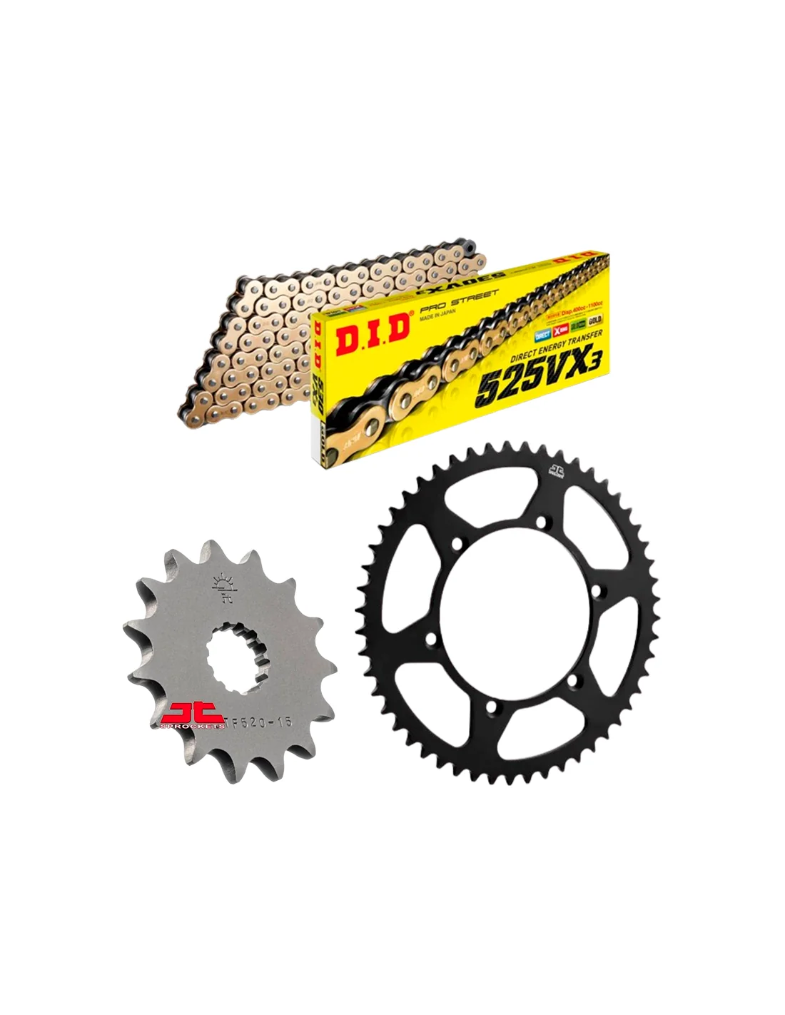 Los kit de transmisión están compuestos por cadena DID fabricante Japones que suministra a equipos de MOTO GP, SBK, MotoAmerica y distribuidor por todo el mundo. Piñón y corona SUPERSPROX también presentes en distintos campeonatos como SBK y en motos de producción.