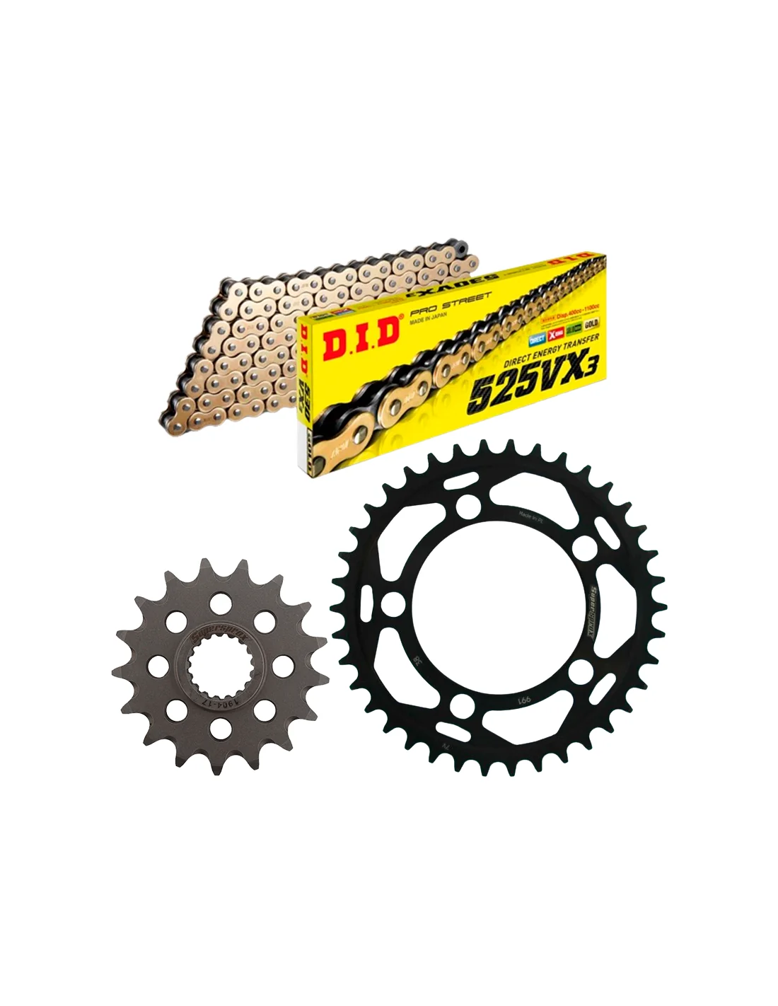 Los kit de transmisión están compuestos por cadena DID fabricante Japones que suministra a equipos de MOTO GP, SBK, MotoAmerica y distribuidor por todo el mundo. Piñón y corona SUPERSPROX también presentes en distintos campeonatos como SBK y en motos de producción.