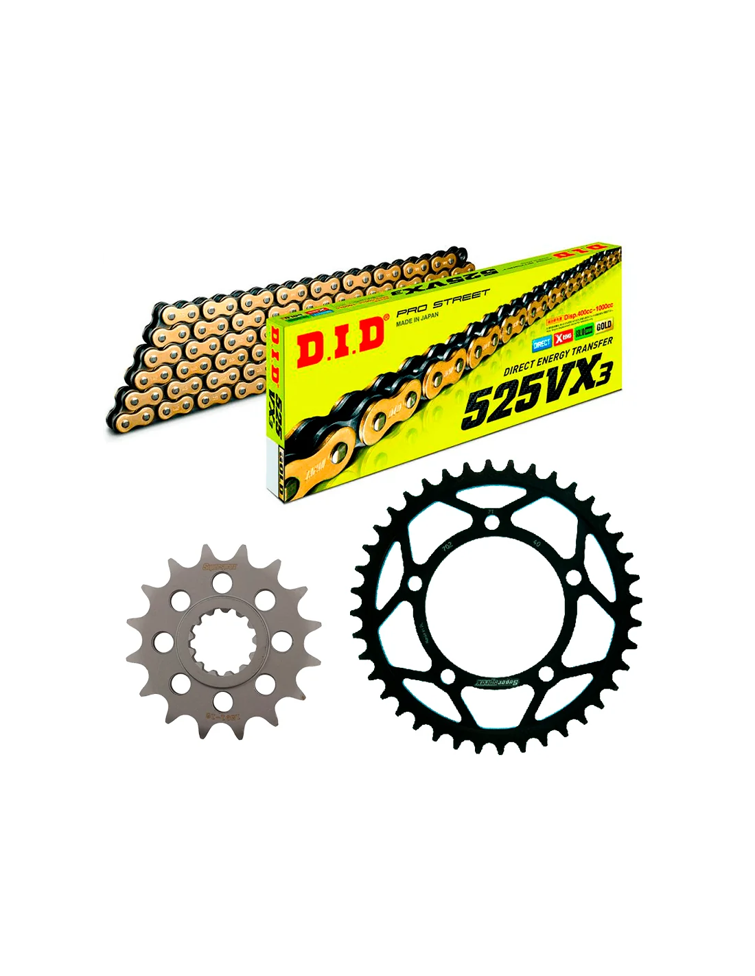 Los kit de transmisión están compuestos por cadena DID fabricante Japones que suministra a equipos de MOTO GP, SBK, MotoAmerica y distribuidor por todo el mundo. Piñón y corona SUPERSPROX también presentes en distintos campeonatos como SBK y en motos de producción.
