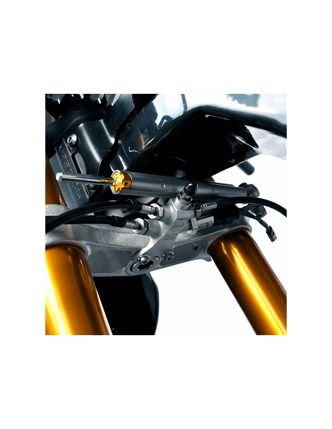Para motos de 2009 a 2014 es recomendable agrandar el agujero M6 debajo de la placa de dirección inferior, roscándolo M8.