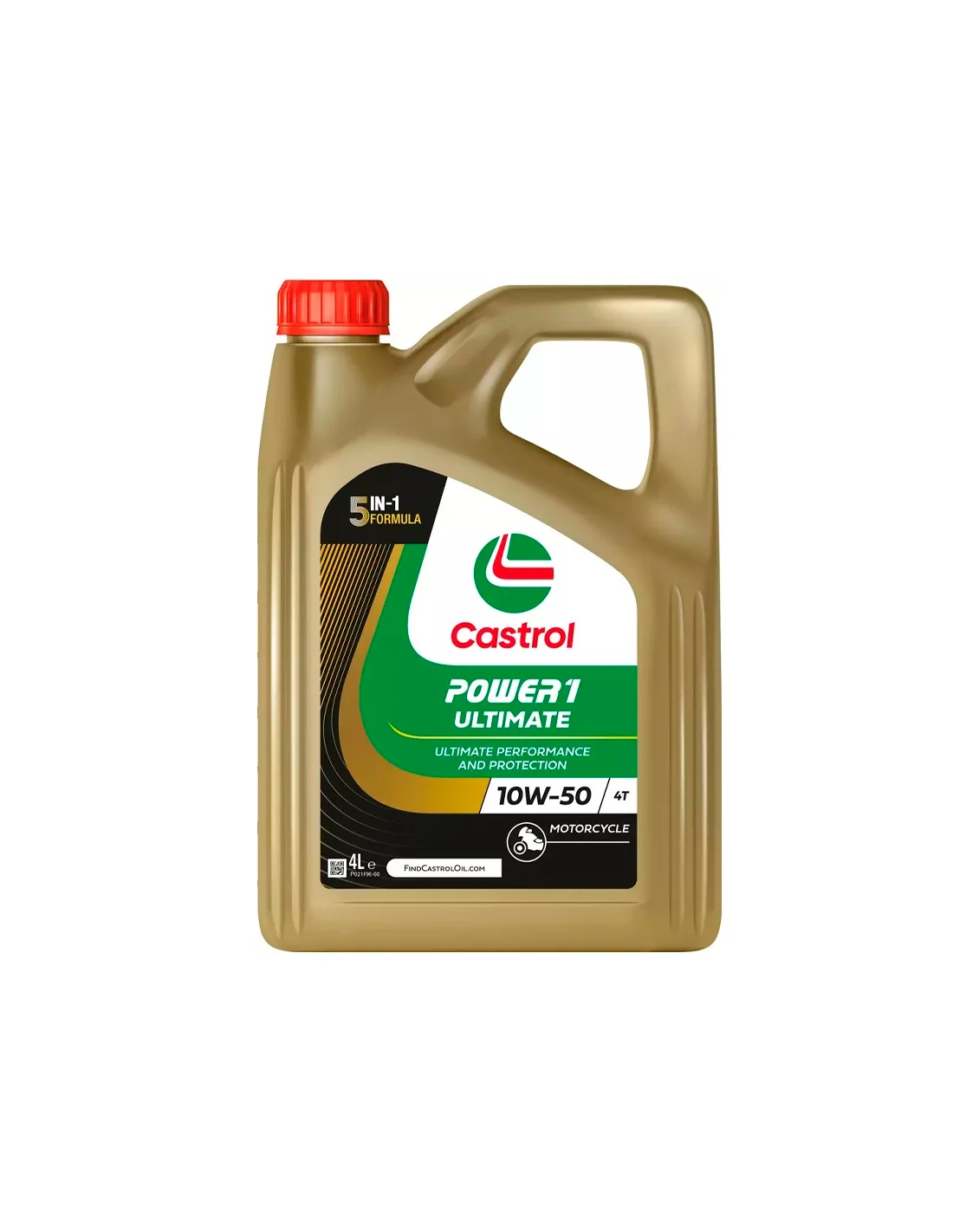 La nueva fórmula 5 en 1 de Castrol POWER1 ULTIMATE se ha desarrollado para ofrecer a tu moto un rendimiento sobresaliente con 5 ventajas definitivas. Castrol POWER1 ULTIMATE también es adecuado para motos modernas de 2 tiempos y de alto rendimiento a las que ofrece un rendimiento y una protección excepcionales.